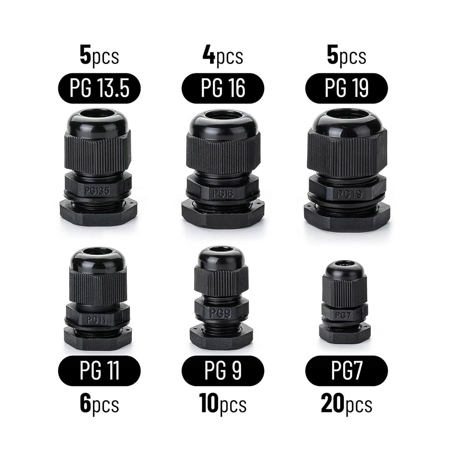 Набір 50 кабельних бульб з діаметром 3-16 мм, які забезпечують відмінний захист кабелів від води, пилу та пилу. Ідеально підходить для використання в корпусі електричної машини та пристроїв. IP68 Клас жорсткості.