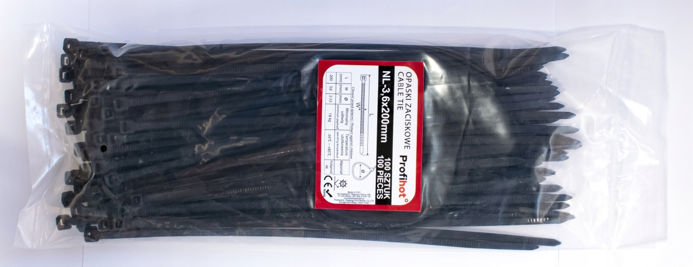 КАБЕЛЬНІ Стяжки CABLE TIES UV BLACK CLAMPS зажим 3,6x200 100 шт.