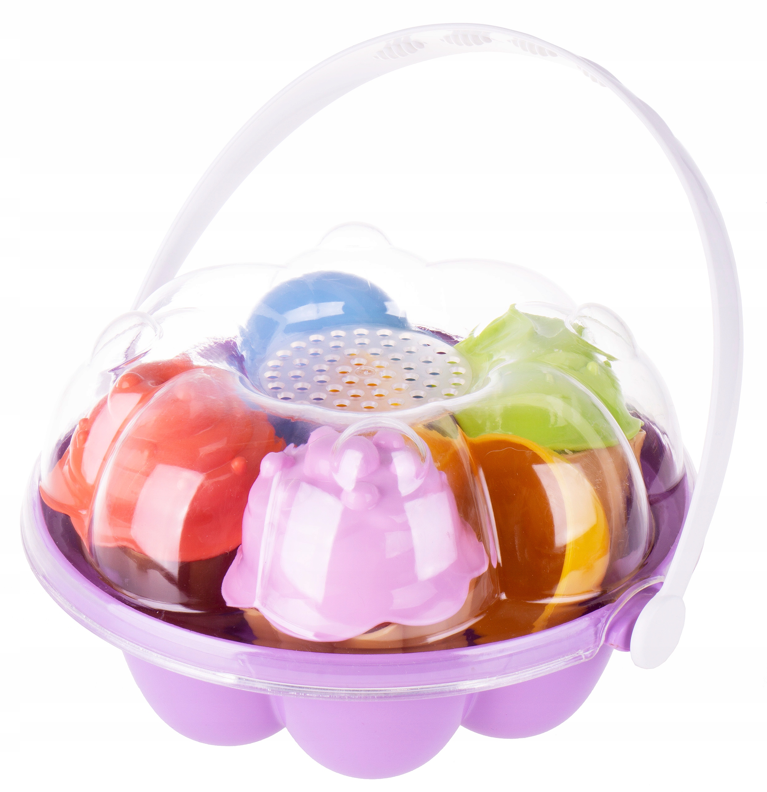 Незамінний набір для ігор у піску, формочки у формі капкейків у практичному кошику з кришкою у формі кексу з кулькою для морозива - ідеально для саду на пляжі або ігрового майданчика, як і вдома в поєднанні з кінетичним піском.