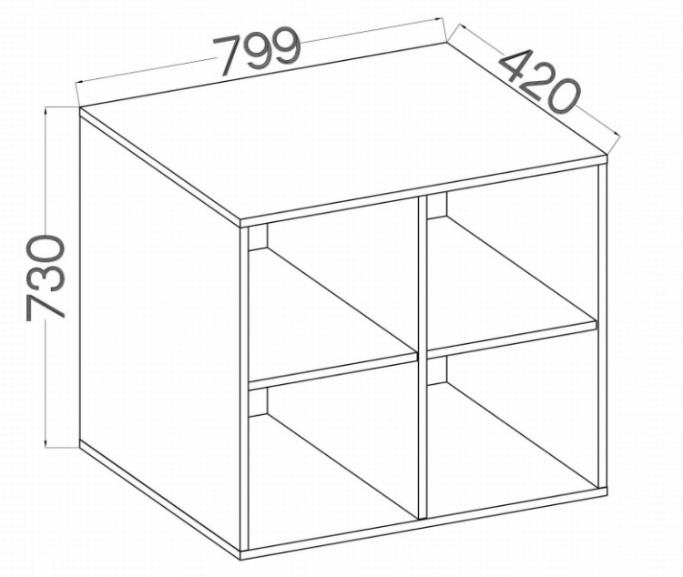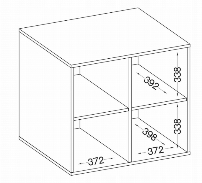 - Чотири полиці розміром 372x338x392 мм (ширина x висота x глибина)
