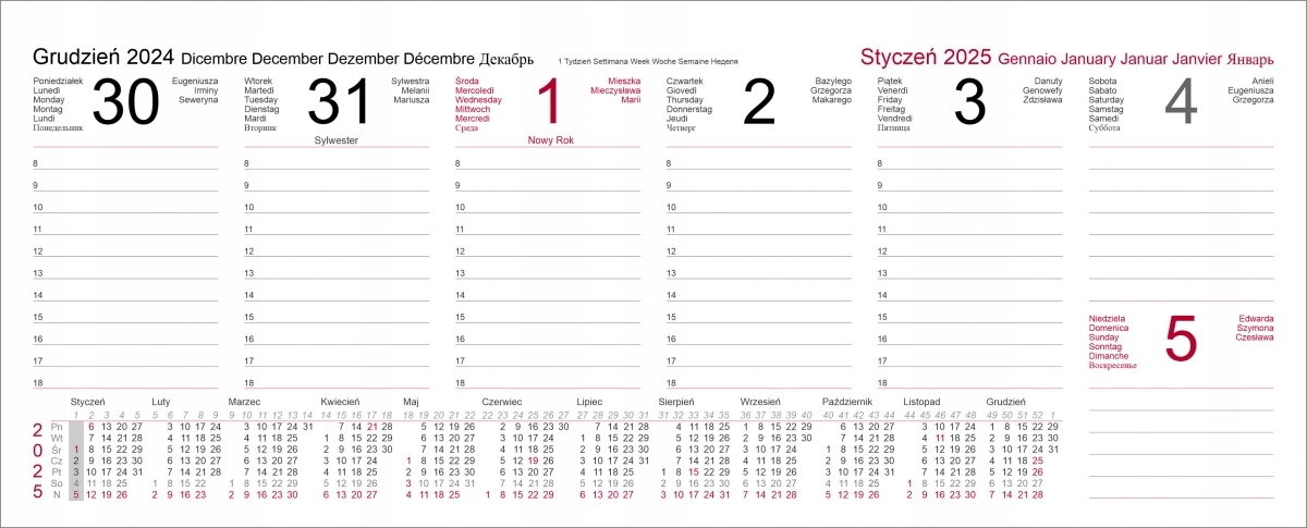 - Скорочений календар для 2024, 2025 та 2026 рр. Польською, італійською, англійською, німецькою, французькою та російською