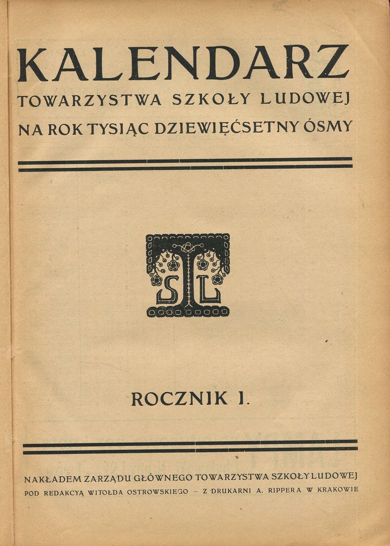 Краків 1908. Видає Головна Управа Товариства Народної Школи, редакція Вітольда Островського.