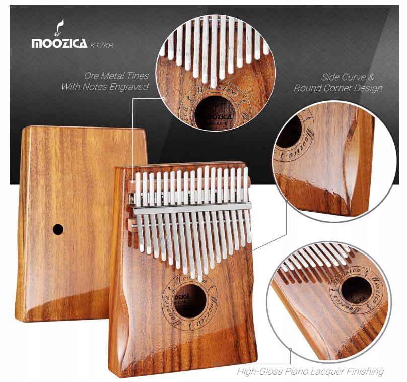 Moozica Kalimba спеціалізується на якості звуку - вибрані зуби з твердої деревини та металевої руди, щоб переконатися, що Калімба видає м'який, резонуючий та розслаблюючий звук. Гра в Калімбі з дітьми та коханою людиною завжди буде чудовою веселою!
