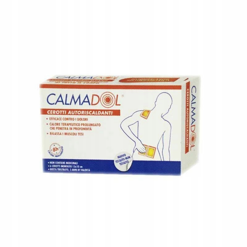 Бинти та пластирі Calmadol, що самонагріваються, корисні для полегшення напружених, втомлених або спазмованих м’язів, забезпечуючи постійне терапевтичне тепло протягом 8 годин. Виготовлені з нетканого полотна (тротил), повітропроникного, м'якого і приємного на дотик; вони також мають спеціальні клітини, що містять такі елементи, як залізний пил, вуглець і сіль, які виробляють тепло під впливом кисню в повітрі. Вони не містять наркотиків і призначені для одноразового використання.