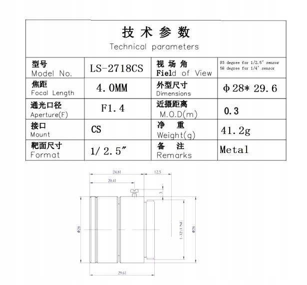 - Камера Sony IMX219 8MP з об’єктивом LS-2718