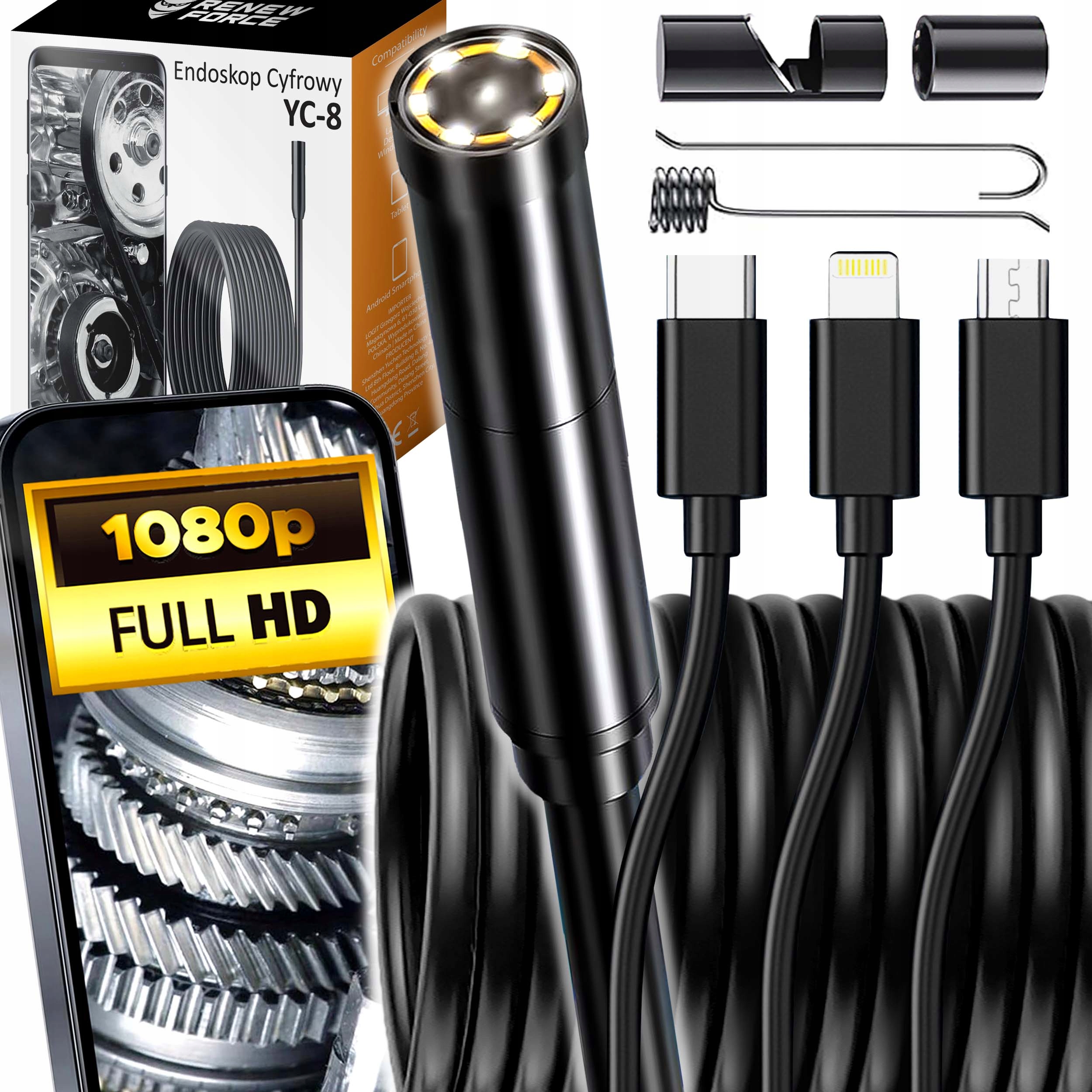 ендоскопом на жорсткому провіднику Image Full HD з новим більшим 8 -мм об'єктивом - це продукт, який буде використовуватися під час виконання домашніх завдань та в спеціалізованій професійній роботі. Пристрій простий у використанні та універсальний. Безкоштовний додаток ендоскопа сумісний з усіма операційними системами - як з Android, так і з iOS. Просто завантажте програму на телефон і підключіть ендоскоп до свого смартфона, щоб камера починала передавати зображення. Відмінна якість лінз ендоскопа змусить вас не пропустити жодних деталей.
