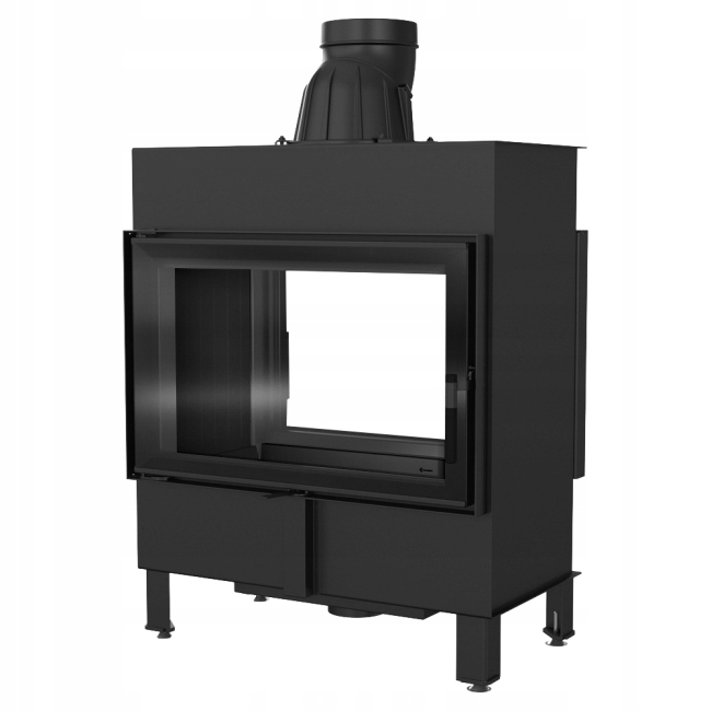 Вставка оснащена двома передніми і задніми дверцятами (замість задньої стінки), завдяки яким тепло випромінюється в двох напрямках. Цей тип каміна часто є вибраним рішенням для встановлення між суміжними кімнатами, напр. вітальня, їдальня або спальня. Вставка оснащена єдиним декоративним склом, завдяки чому виглядає елегантно і сучасно. Використання цього рішення оптично збільшує передню частину вставки та підкреслює бачення вогню. Дверцята-вставки мають зручну ручку.