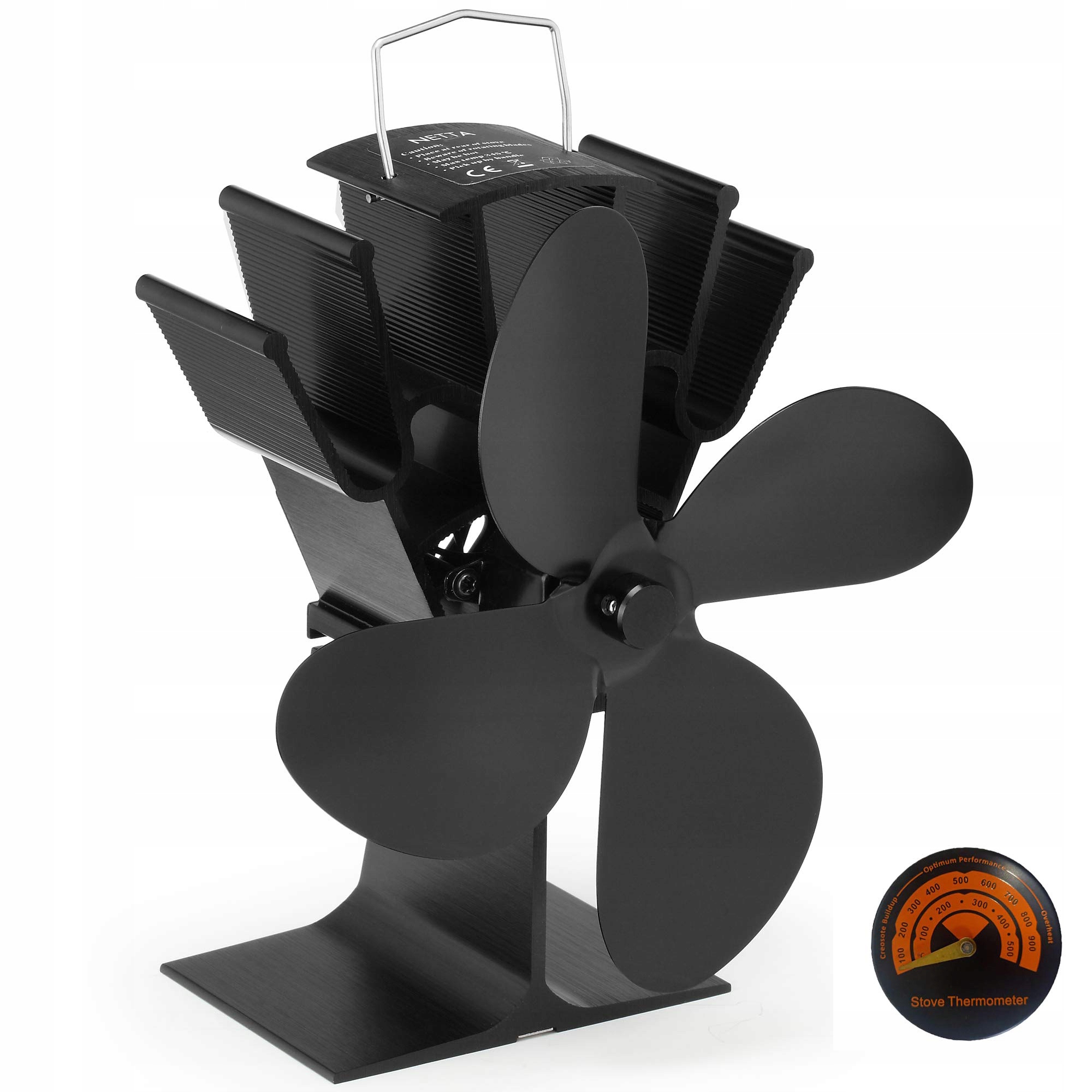 Основа та лопаті вентилятора для дров’яної печі виготовлені з анодованого алюмінію, який не іржавіє та не піддається корозії, що значно подовжує термін служби вентилятор. Привабливий і практичний.