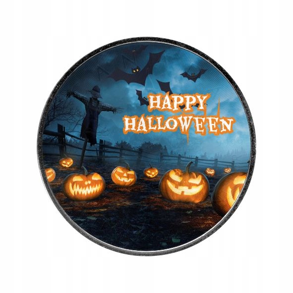 Canadian Maple Leaf Happy Halloweenце срібло 999 проби вагою одна унція. Монета була окислена та має барвистий УФ-друк.