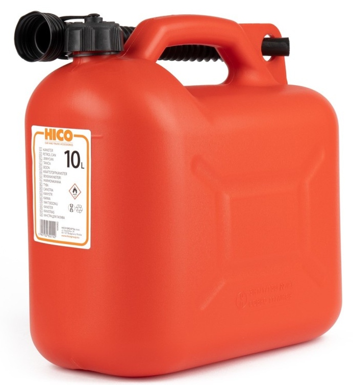 Схвалена пластикова каністра для зберігання, транспортування та тимчасового зберігання рідкого палива та інших нафтових речовин. Виготовлений з високоякісного армованого ПНД поліуретану, що підвищує стійкість до пошкоджень і деформації в результаті високої температури і механічних пошкоджень. Має гнучку лійку та заглушку, що кріпиться до стрічки.
