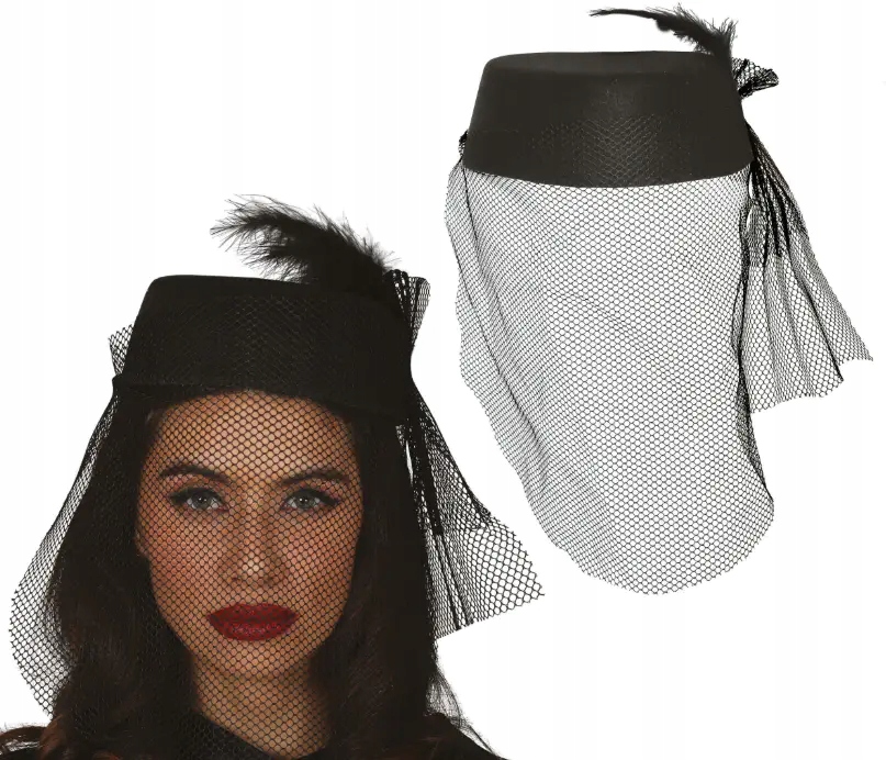 Додайте таємничості своєму костюму! Капелюшок Чорної Вдови з елегантною вуаллю і пером - унікальне доповнення до костюма на Хелловін, карнавал, костюмовану вечірку або тематичну вечірку. Ідеально підходить для жінок, які цінують стиль, елегантність і нотку темного шарму.