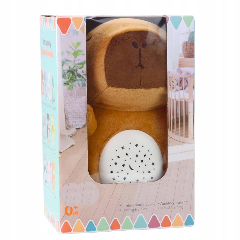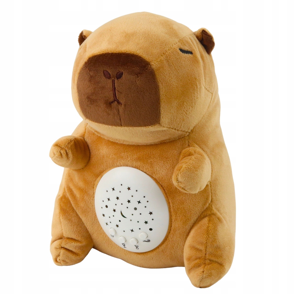 ПЛЮШ КАПІБАРА ТАЛІСМІН ЗІРКИ ПРОЕКТОР КАЛЮКАННЯ ЗВУКИ Плюшевий талісман капібара із зірковим проектором - унікальний супутник для сну дитини. М'яка і приємна на дотик, капібара одночасно служить м'якою іграшкою, нічником і звуковим програвачем. Завдяки цьому він допомагає вашій малечі швидше заснути та почуватися в безпеці в темряві. Проектор відображає казкове зображення нічного неба із зірками та місяцями на стелі та стінах. Є можливість регулювати яскравість світла - від ніжного світіння до більш сильного освітлення. Капібара також відтворює заспокійливі звуки та мелодії - є цілих 8 різних колискових пісень на вибір і заспокійливі звуки природи, такі як шум хвиль. Талісман був розроблений з думкою про найменших - він простий у використанні, а модуль проектора можна від'єднати, що полегшує очищення іграшки. Це ідеальне поєднання плюшевого ведмедика, проектора та музичної скриньки, ідеальне як для повсякденних ігор, так і для вечірнього відпочинку. СПЕЦИФІКАЦІЇ: ЗМІСТ НАБОРУ: