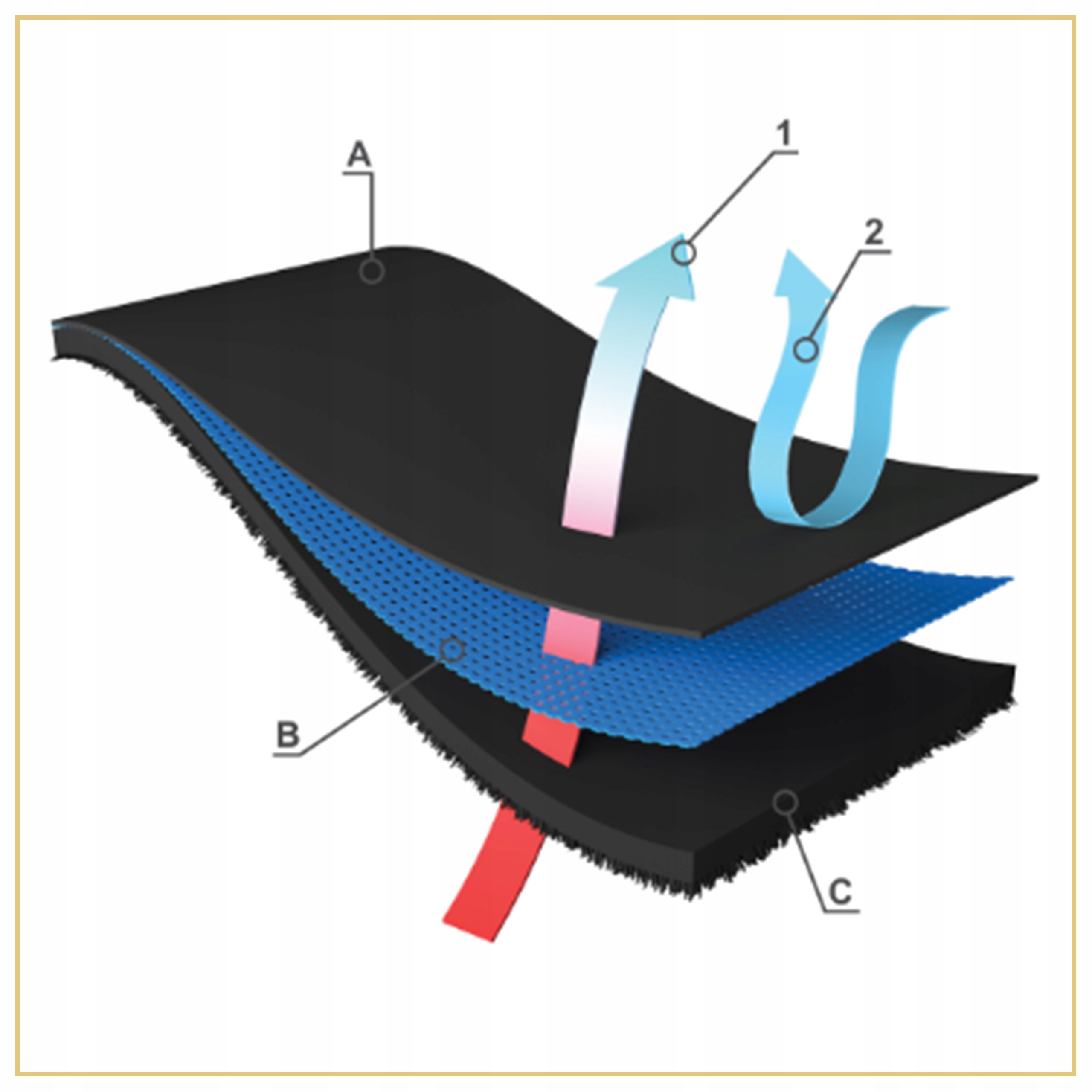 B – тонка мембрана, яка пропускає повітря, але не впускає його. Що надає капелюху вітрозахисні властивості