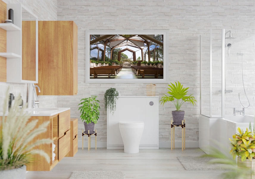 Каплиця мандрівників, також відома як Скляна церква, розташована в Ранчо Палос Вердес, Каліфорнія. Керол Хайсміт - плакат 70x50 см