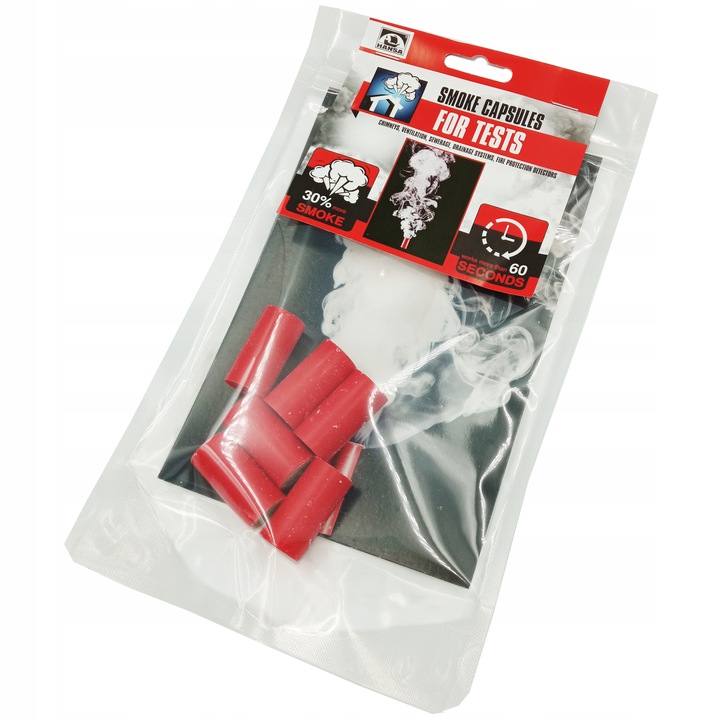 Після запалювання капсули протягом приблизно 60 секунд (без полум’я) виділяється дуже інтенсивний дим (15 м3), таким чином ми можемо перевірити герметичність з’єднань без необхідності розпалювати камін.