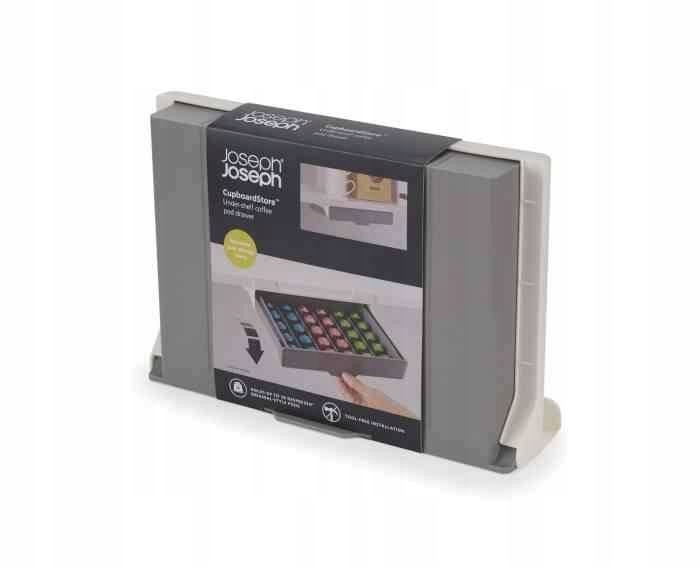 Ящик-капсула під полицею CupboardStore від Joseph Joseph — це надзвичайно надійний, сучасний і дуже інноваційний продукт. Продукти, що зберігаються в ньому, не мнуться і не рвуться і довше залишаються свіжими. Завдяки цьому ви також можете контролювати хаос на кухонній стійці. Органайзер висувається і дуже простий у використанні. Чудова ідея використання невикористаного простору під полицею. Виготовлений з міцного пластику, тому дуже міцний і довговічний. Кріпиться стрічкою 3M VHB, призначена для шаф з мін. ширина 28 см і товщина полиці макс. 2 см.