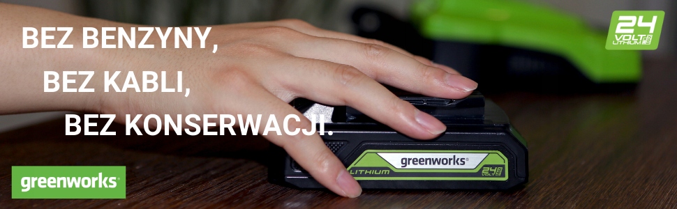 - Один акумулятор для всього - 24В батареї Greenworks, від 2AH до .