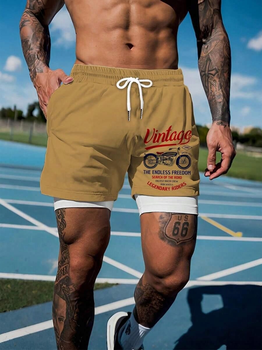 КАРАМЕЛЬНІ СПОРТИВНІ ШОРТИ З БІГОВИМИ ГЕТАМИ 2В1 SHEIN L КИШЕНІ