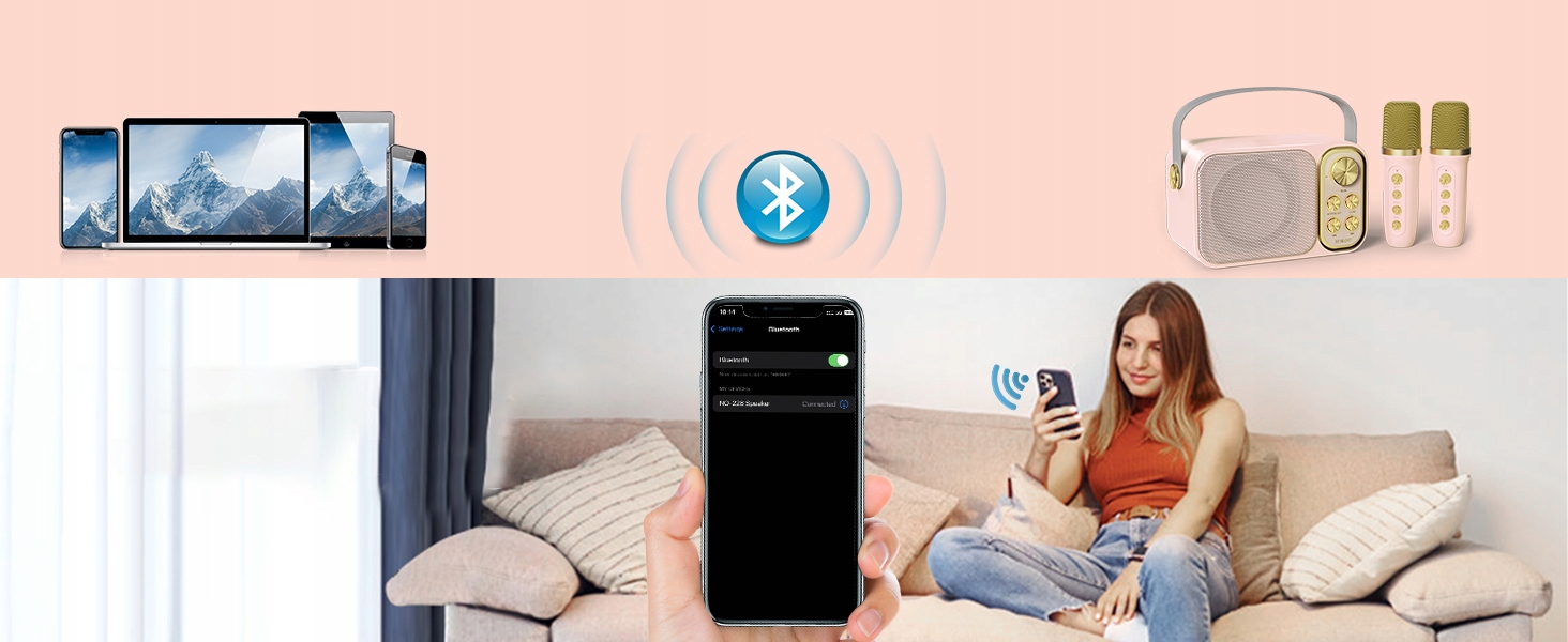 Функція: відтворювати музику MP3 на U-диску/картці TF, підключатися до мобільного телефону, телевізора, проектора чи караоке планшета через Bluetooth, використовувати як мікрофон для мова