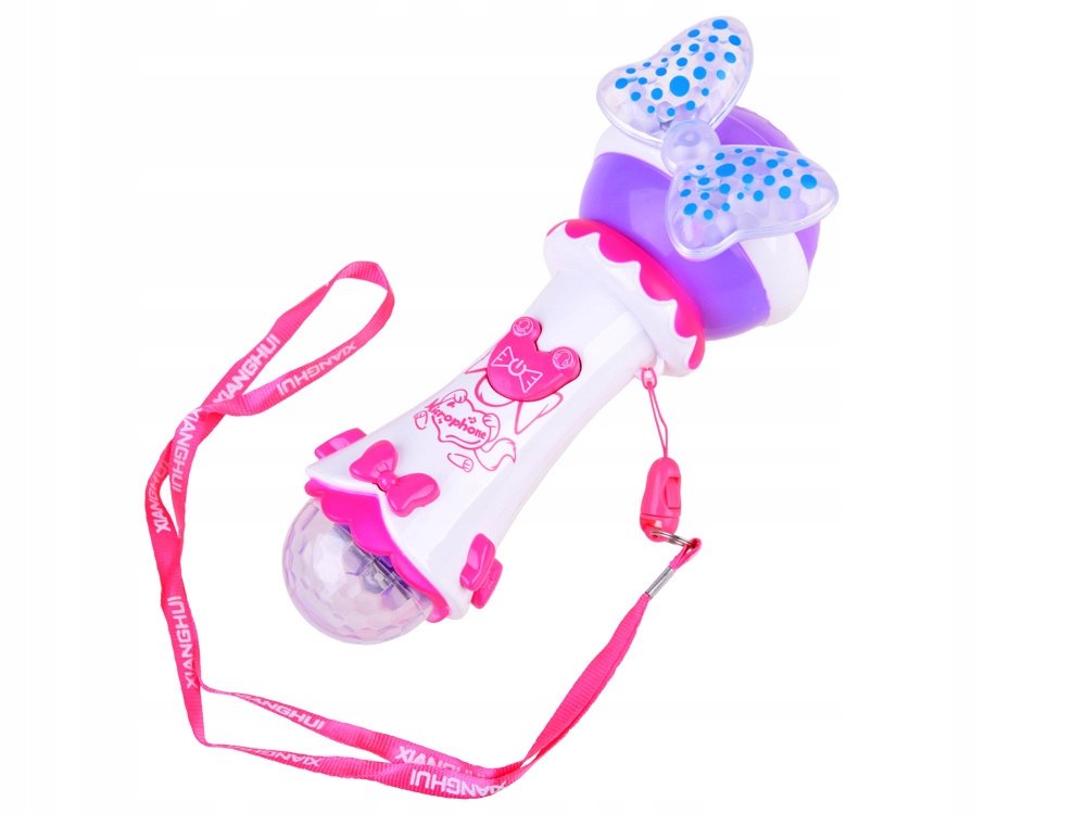 Мікрофон має функцію запису та відтворення, також є вхід MP3, що дозволить вам співати улюблені пісні під оригінальний фон. Мікрофон також має можливість змінювати голос дитини на п'ять різних стилів, що може зробити будь-яку гру привабливішою. Серед додаткових цікавинок – світлові ефекти, підморгуючий лук і кулька в нижній частині мікрофона.