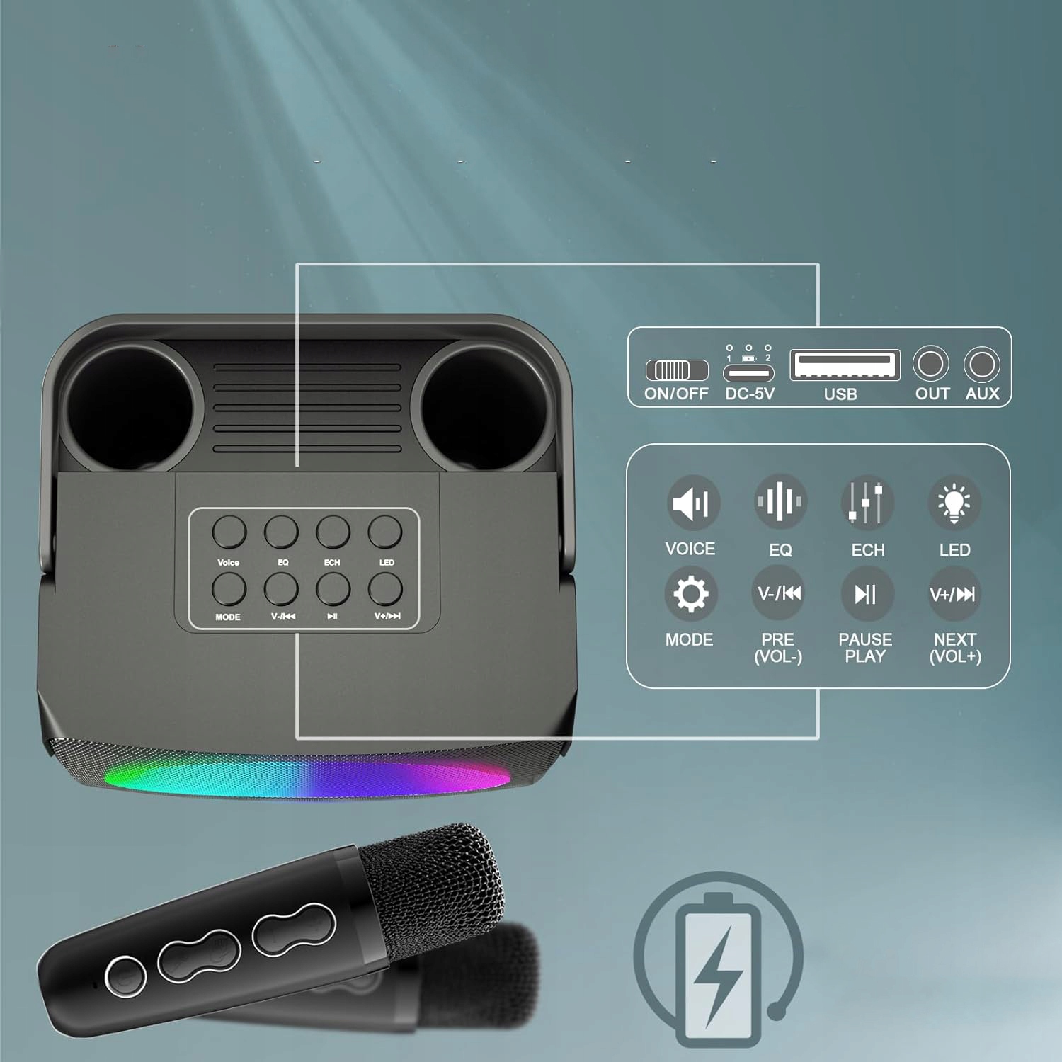 Караоке встановлений з 2 бездротовими мікрофонами світлодіодного динаміка Bluetooth 10 Вт