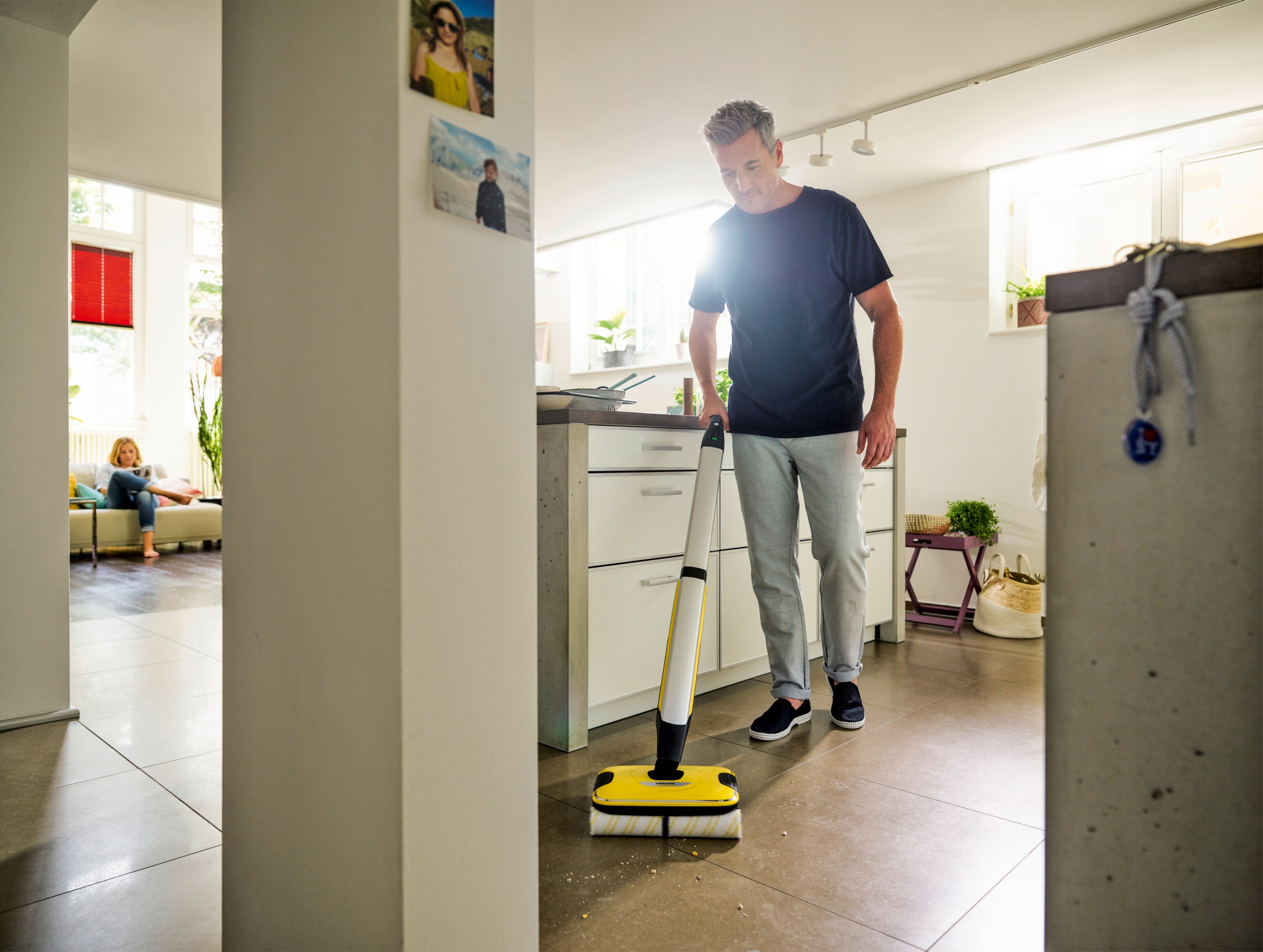 Нова електрична швабра FC 7 від Karcher є ідеальним рішенням для швидкого чищення майже всіх типів твердих підлог. Завдяки інноваційній конструкції 2-в-1 він поєднує в собі функції миття та збирання бруду, видаляючи як сухий, так і вологий бруд. Це дозволяє припинити пилососити перед миттям підлоги і таким чином скоротити час прибирання вдвічі. Незалежно від того, чи ми хочемо очистити панелі, керамічну плитку, камінь, ПВХ або іншу гладку підлогу - результати прибирання з FC 7 завжди чудові.