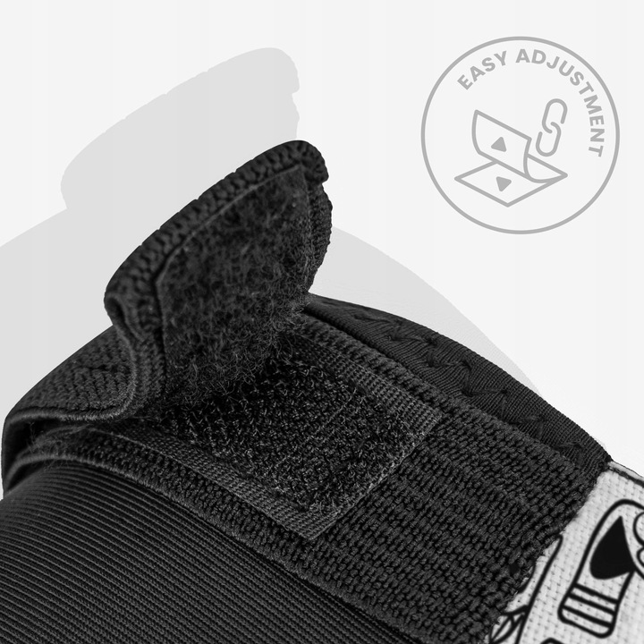 Подвійний фальшивий липучка дозволяє точне регулювання розмір захисників, забезпечуючи їх стабільність та комфорт носіння - навіть під час динамічних атракціонів
