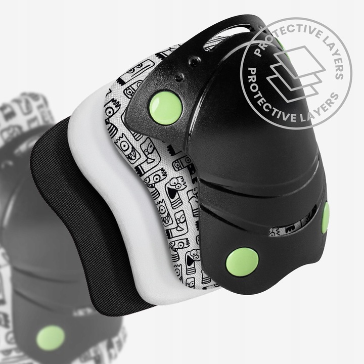 Цей набір захисників є всебічним захистом для вашої дитини - аж чотири шари дбають про його безпеку. міцна оболонка захищає від ударів, піни поглинає поштовхи, гнучкий шкарпетка гарантує комфорт , а стильна зовнішня тканина надає захисникам привабливий зовнішній вигляд