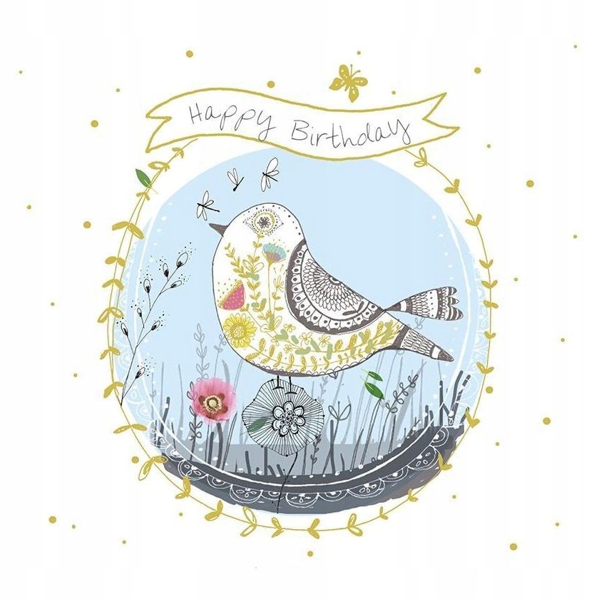 KARNET KWADRAT Z KOPERTĄ URODZINY PTAK
