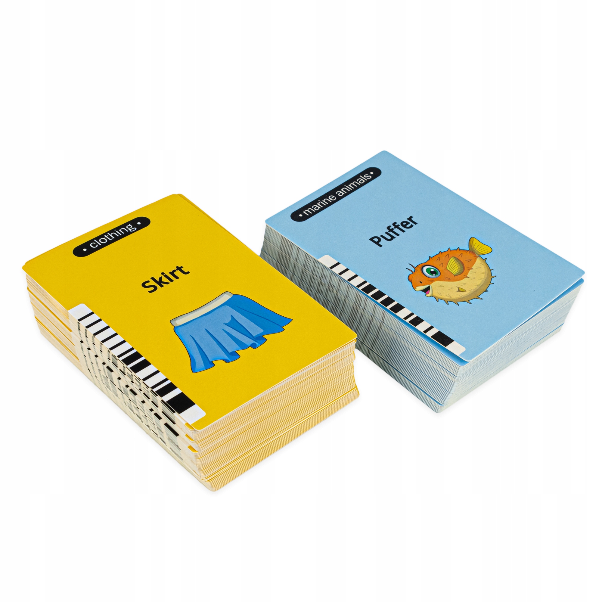 Картки розділені на різні теми, як-от тварини, місця у світі, динозаври, професії, кольори та багато іншого.