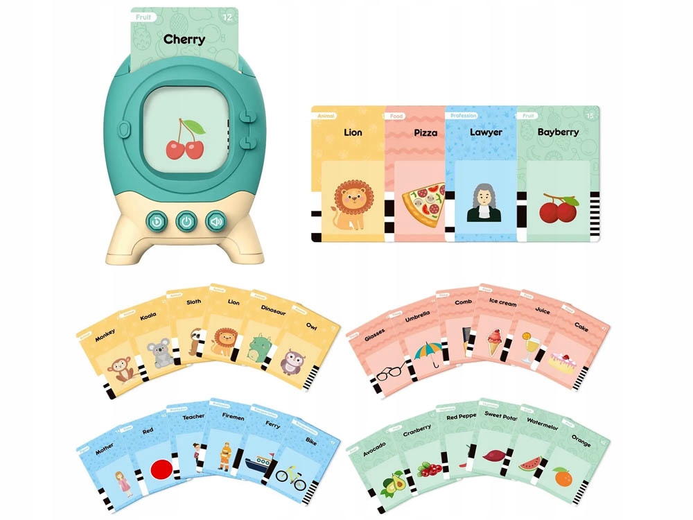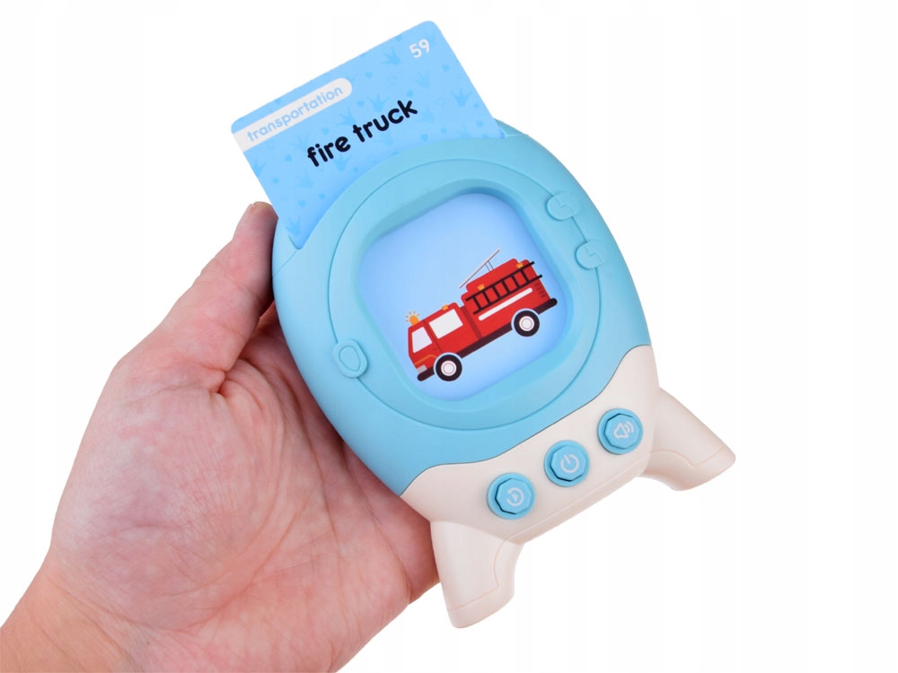 Пристрій для читання карток, створений для дітей та інших, які тільки почали вивчати англійську мову. Під час гри дитина може легко та приємно вивчати слова з категорій, зокрема: продукти, тварини, транспорт. Вирази, які ви вивчите, неодмінно стануть у нагоді на уроках іноземної мови, а також у майбутньому, у повсякденному житті чи під час подорожі за кордон. Це практична навчальна іграшка, яка поєднує навчання з розвагою.