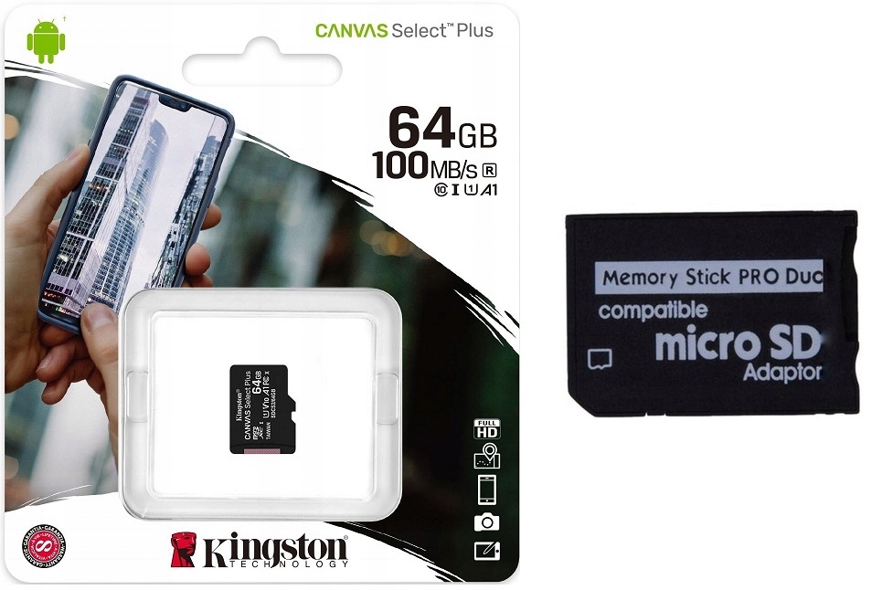 Оригінальна карта пам'яті KINGSTON 64GB microSDHC class 10 + адаптер MS PRO DUO для консолі PSP
