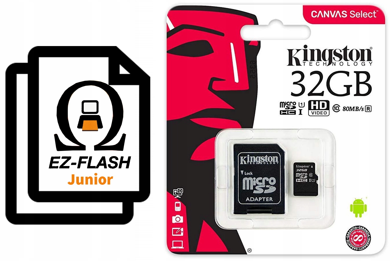 Нова карта пам’яті microSD на 32 ГБ повністю налаштована та готова до роботи з програматором EZ-Flash Junior. На карті встановлені інсталяційні файли, які гарантують безвідмовну та миттєву роботу пристрою. Щоб насолодитися грою, просто завантажте вибрані ігри на карту пам'яті та вставте її в програматор EZ-Flash Junior.