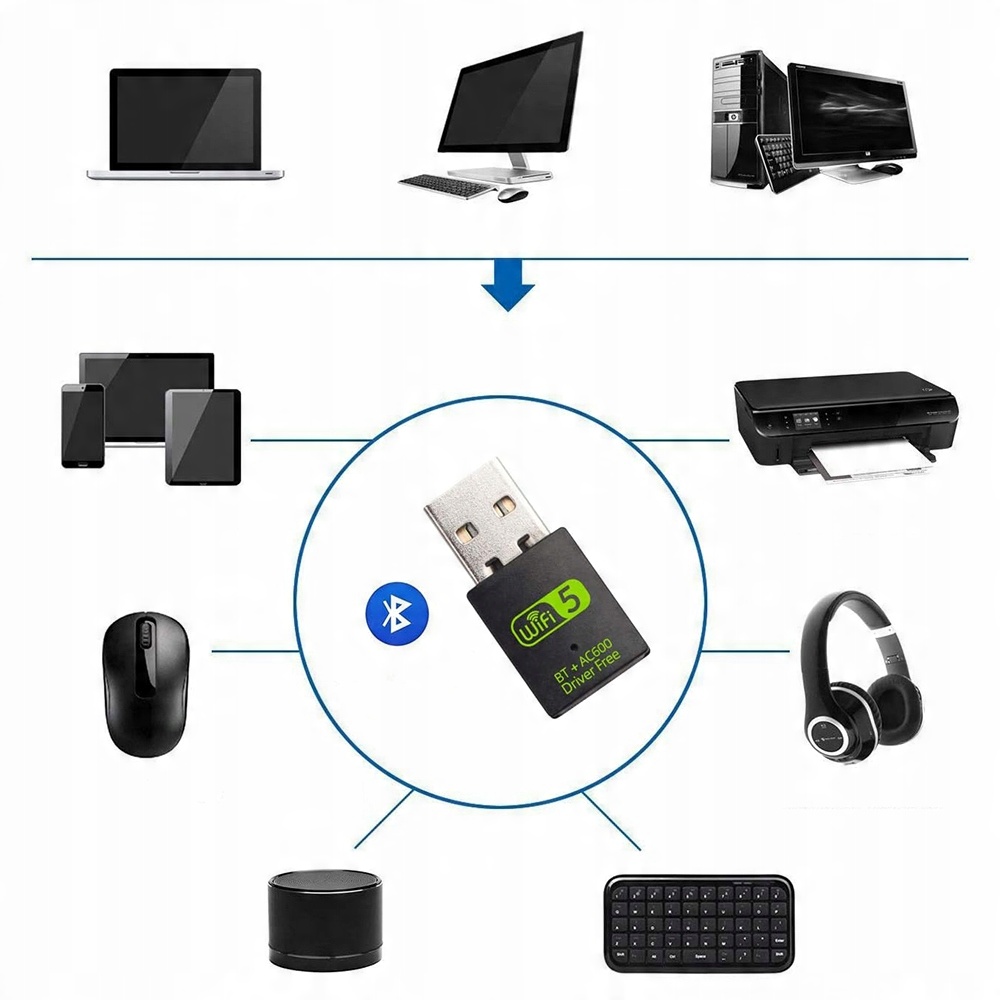 КАРТА SIECIOWA WIFI BLUETOOTH USB 600 Мбіт/с
