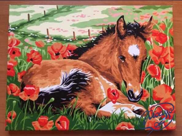 На полотні є зони з надрукованими цифрами, які необхідно зафарбувати фарбою з цифрами. p>