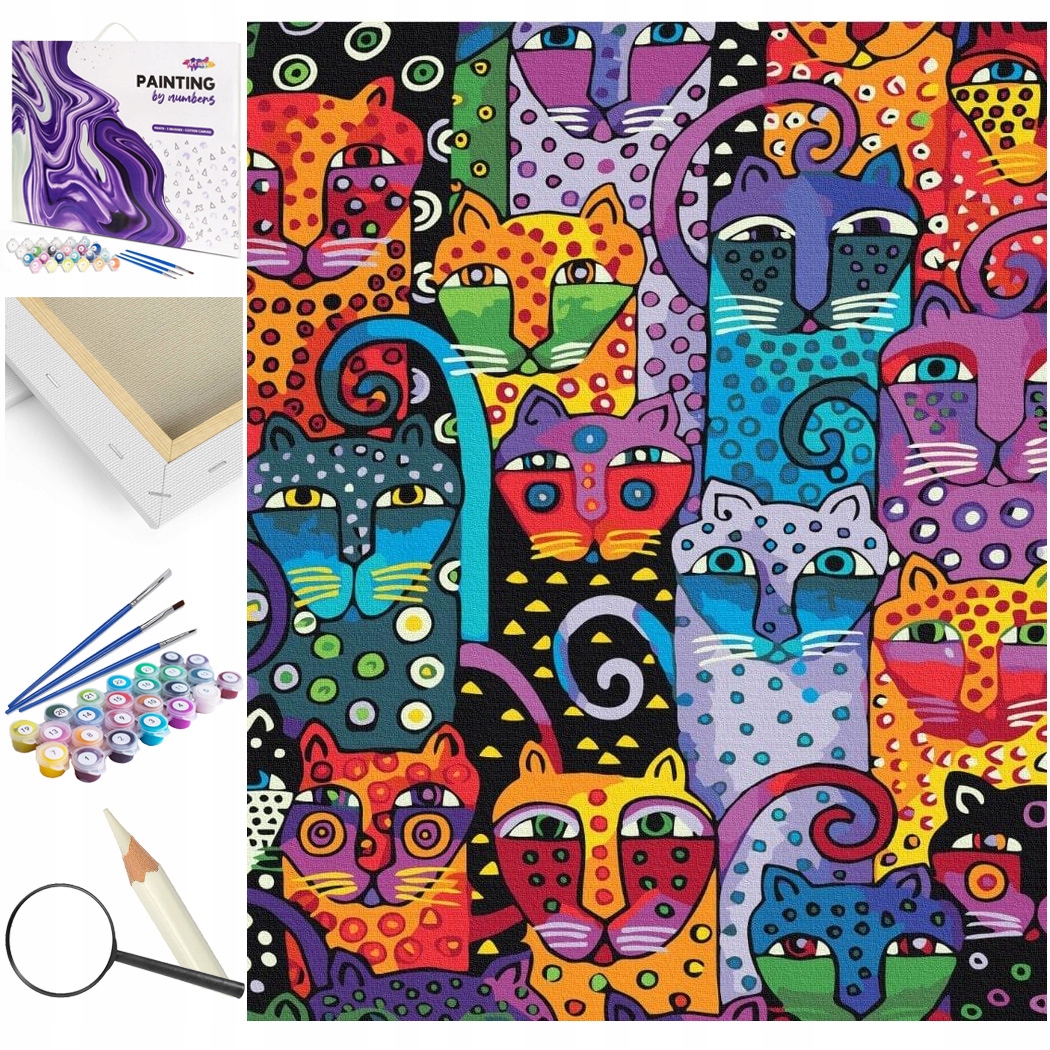 ПРИМІТКА: Цей аукціон призначений для набору для малювання за номерами, Різнокольорові коти, розміром 50x40 см, НА РОЗТЯГНУТІЙ НОСИЛЦІ