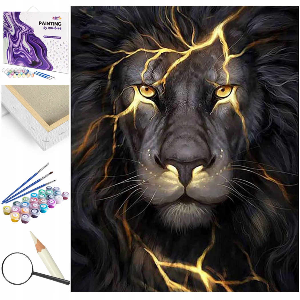 ПРИМІТКА: Цей аукціон призначений для набору малювання за номерами, Темний лев, розміром 50x40 см НА РЕМЕНІ.