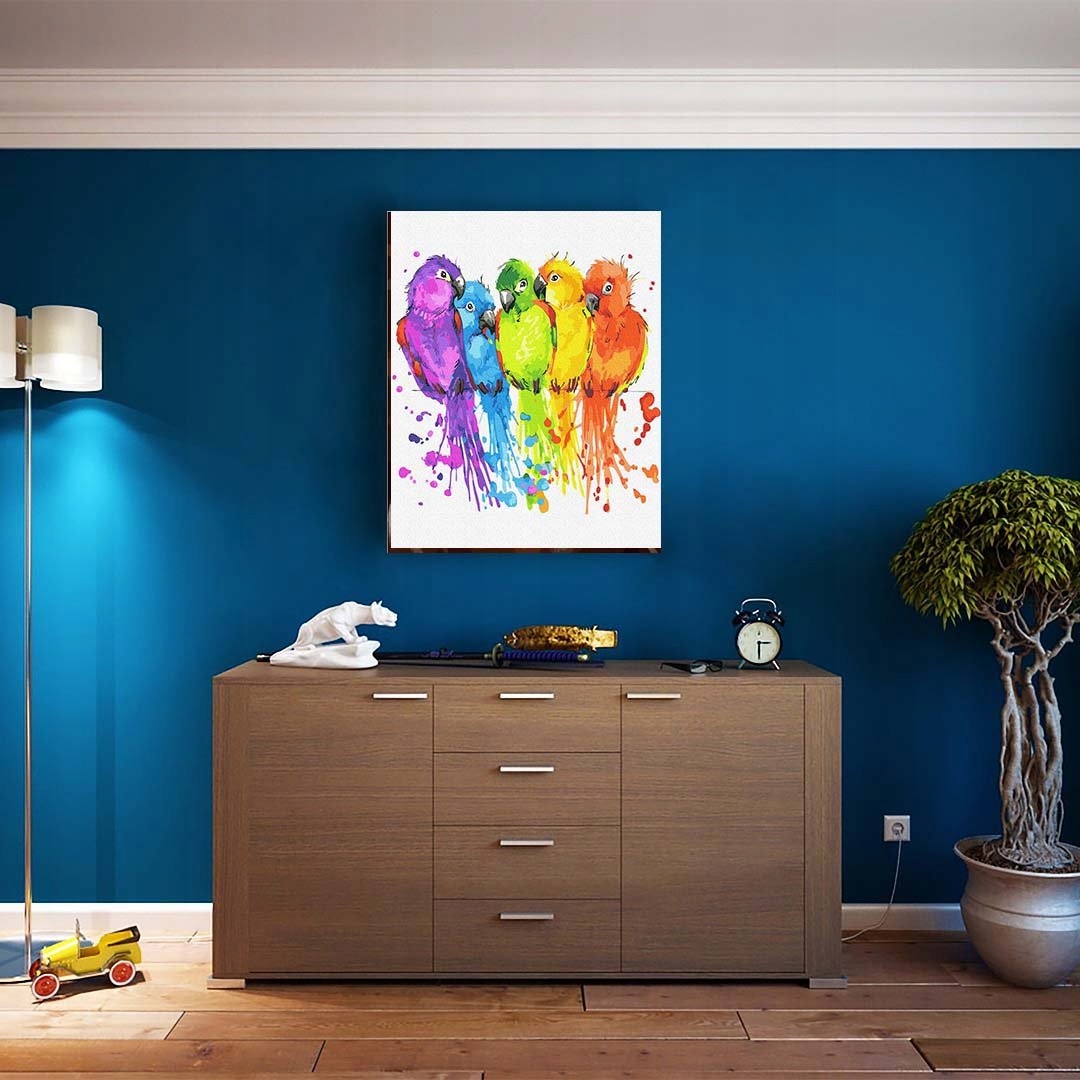 ПРИМІТКА: Цей аукціон призначений для набору для малювання за номерами, різнокольорових папуг, розміром 50x40 см, НА НИТАЛКАХ