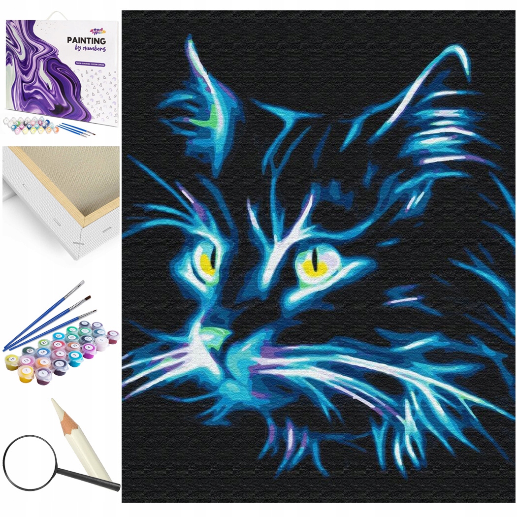 Набір для малювання за номерами Neon Cat Painting By Numbers 50x40см на дерев'яному підрамнику