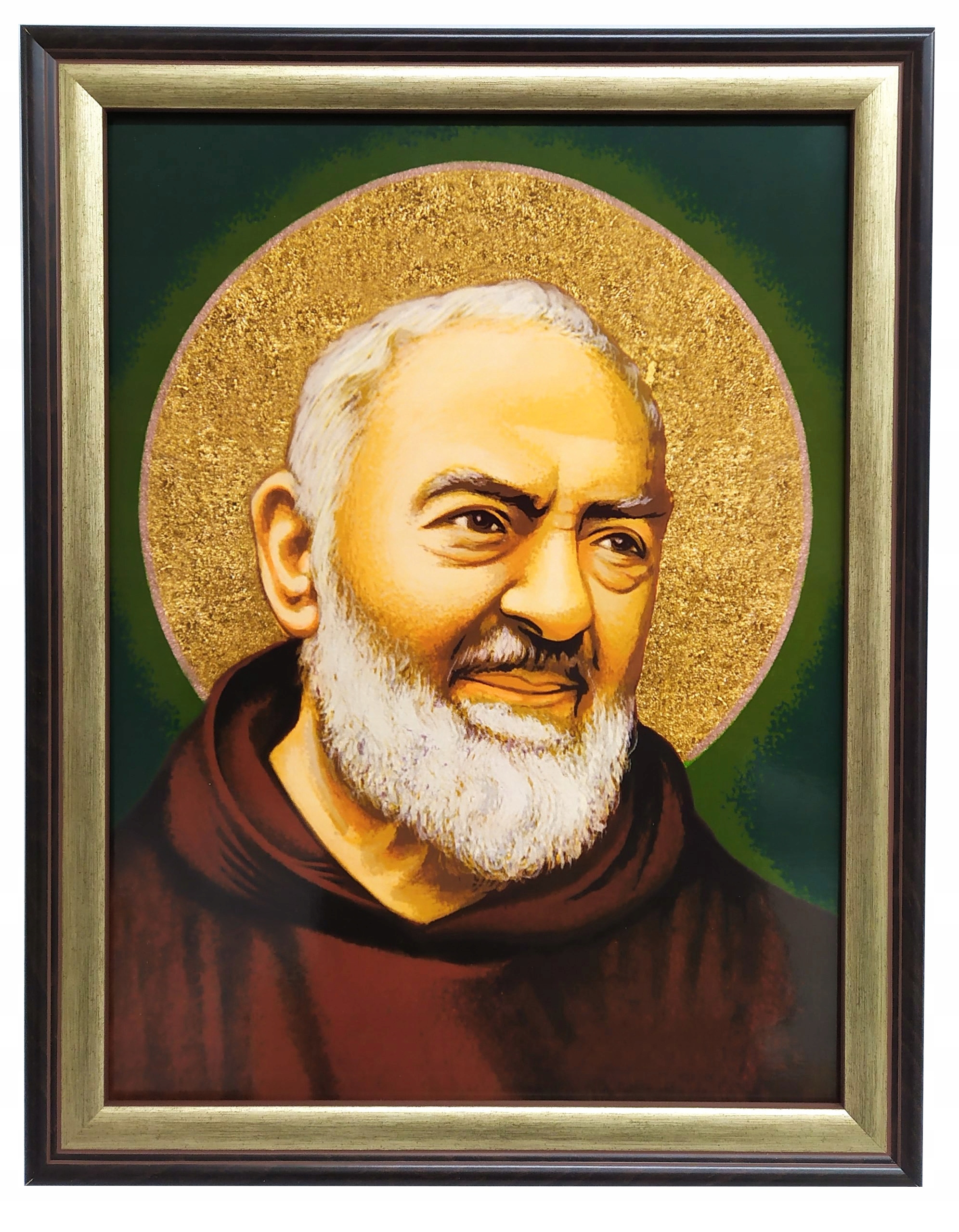 КАРТИНА СВЯТОГО ОТЦЯ ПІО ДЕРЕВ'ЯНА РАМКА 35Х45