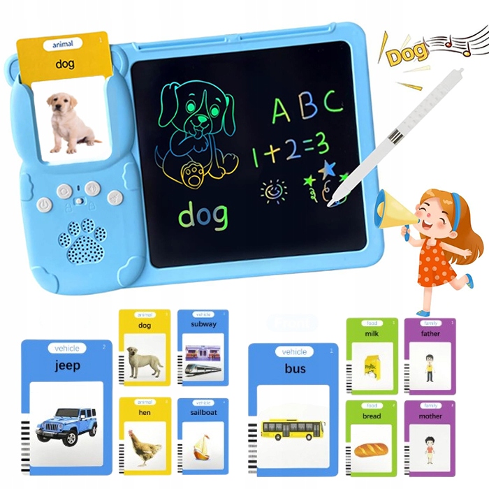 ✅Пристрій для читання карток: набір містить 112 двосторонніх карток зі словами. Після вставлення картки в пристрій для читання пристрій вимовляє слово з картки та може видавати звук, напр. звук собаки. Це чудовий інструмент для вивчення англійської мови та розвитку словникового запасу.