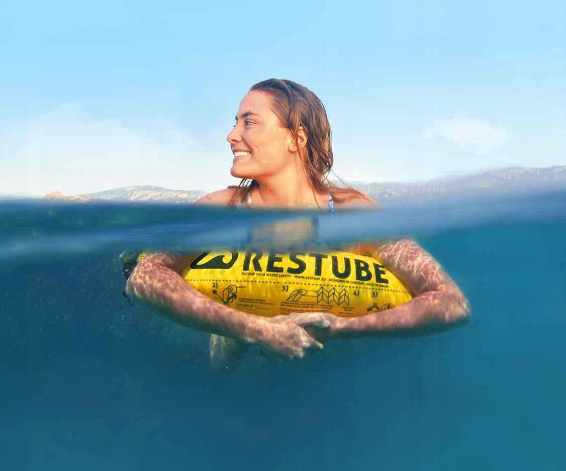 Що шолом для лижника, велосипедиста чи будівельника, RESTUBE підходить для серфінгіста, плавця, людини на борту чи біля води. Під час водіння автомобіля ми пристібаємося ременями безпеки, а взимку в походи в гори беремо з собою лавинний рюкзак. Перебуваючи біля води, ми повинні мати з собою RESTUBE, щоб відчувати себе в безпеці. Незалежно від того, чи є у воді сильна течія, чи страждаємо ми від судом, чи ламається водне обладнання, яким ми користуємося, чи просто заради кращого, безпечнішого самопочуття, RESTUBE може врятувати наше життя. RESTUBE - це легкий буй безпеки, який поміщається в маленьку зручну сумку, яку ви завжди можете мати з собою. Буй постійно з'єднаний з поясом, який застібається пряжкою на талії. Після витягування шпильки буй безпеки наповнюється з типового 16-грамового картриджа CO2 за частки секунди. У наповненому стані він має зміщення 75 Н (7,0 кг), чого достатньо, щоб утримувати голову кожного користувача над поверхнею води. Після наповнення хапаємо буй і кличемо на допомогу або пливемо в безпечному напрямку. RESTUBE також можна наповнювати повітрям через рот через зливний і впускний клапан. Цей клапан також використовується для випуску CO2 або повітря (після натискання на клапан кришкою догори дном). Після встановлення нового картриджа CO2, згортання буя та зберігання його в сумці RESTUBE знову готовий до використання. Буй виготовлений з міцного матеріалу, дозволеного для виробництва рятувальних жилетів. Його також можна використовувати в морській воді. Тому ми рекомендуємо використовувати оригінальні картриджі RESTUBE CO2, які також стійкі до морської води та гарантують належну роботу в будь-яких умовах. Всі використовувані матеріали мають сертифікати, необхідні для виробництва рятувальних жилетів. Вся продукція RESTUBE проходить 100% контроль якості та надходить з Німеччини. RESTUBE готовий до використання прямо з коробки. RESTUBE не потребує спеціального обслуговування. Перед повторною спробою рекомендується перевірити RESTUBE