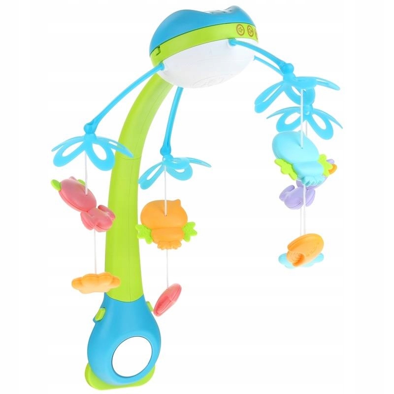 Час трохи розважитись від чуттів! Барвистий мобіль на ліжечко - ідеальна ідея іграшки для самих маленьких. Обертові іграшки-підвіски спонукають до ігор протягом дня, а спокійні мелодії заспокоять і підготують до сну. Завдяки різнокольоровим і різноманітним формам малюк розвиває уяву, органи чуття та зір.