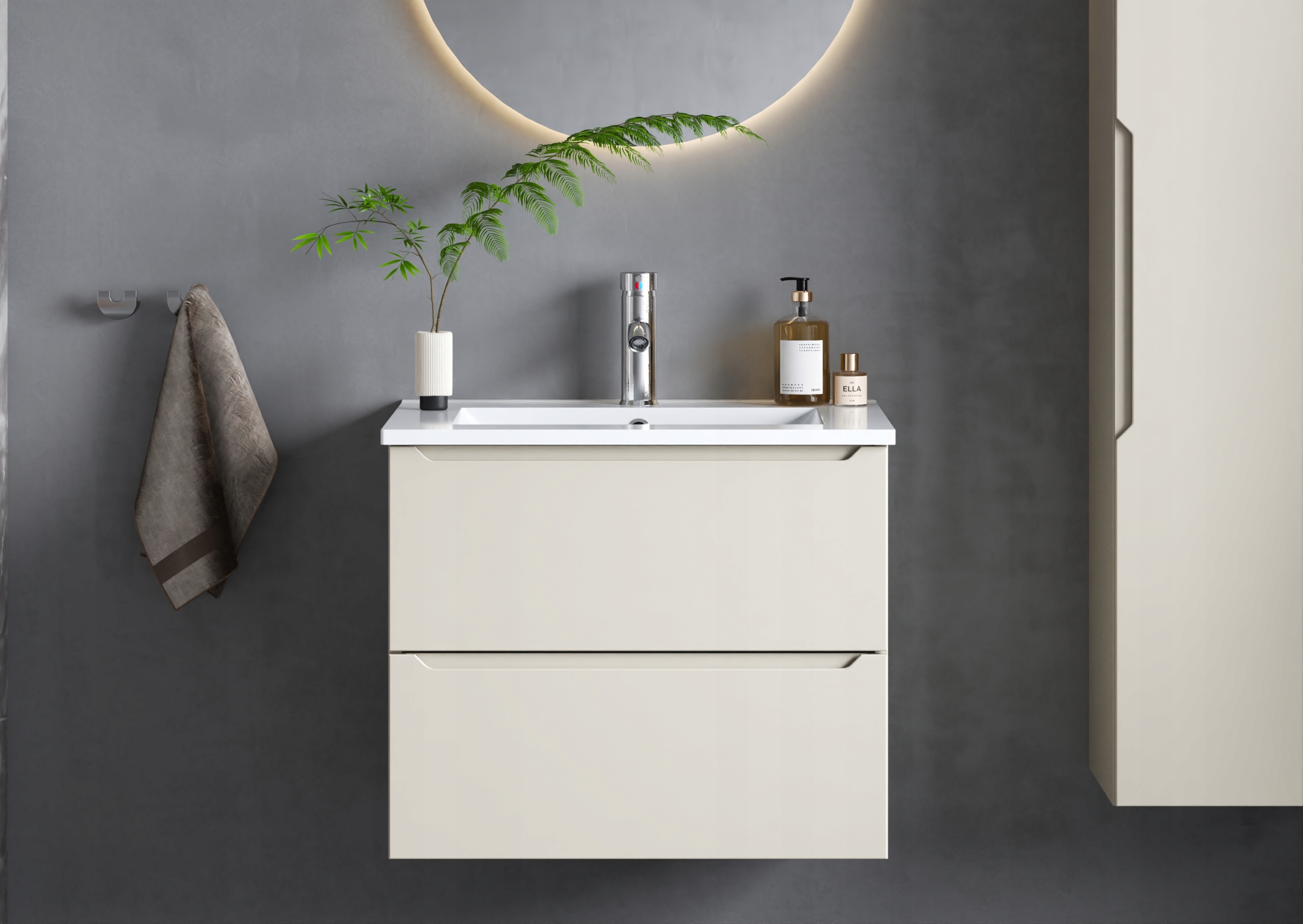 Колекція — це не лише поєднання позачасового дизайну та функціональності, це також гарантія надійної роботи. Використання міцних матеріалів забезпечує стійкість до вологи та щоденне використання, що є вирішальним у складних умовах ванної кімнати.