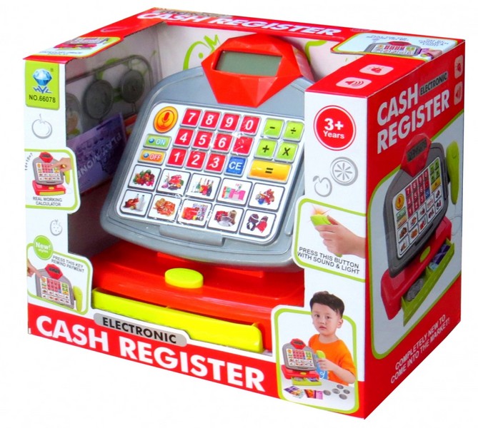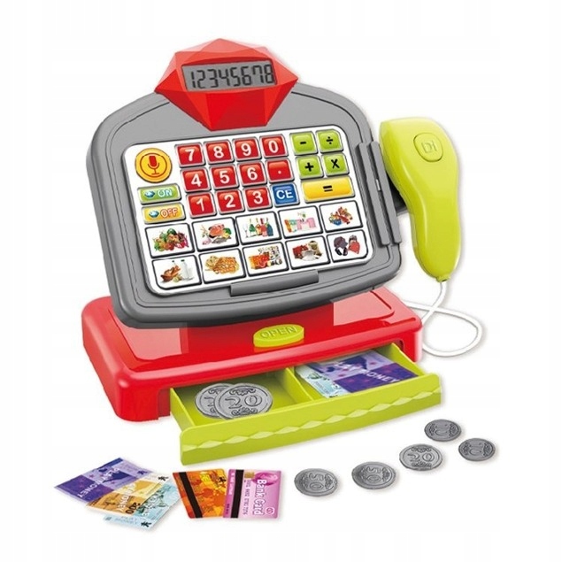 готівка з світлом і звуком 27 х 21 х 14 см. Додаткові аксесуари: набір грошей. Продукту потрібні батареї 3 x "AA" - немає. Іграшка призначена для дітей старше 3 років.