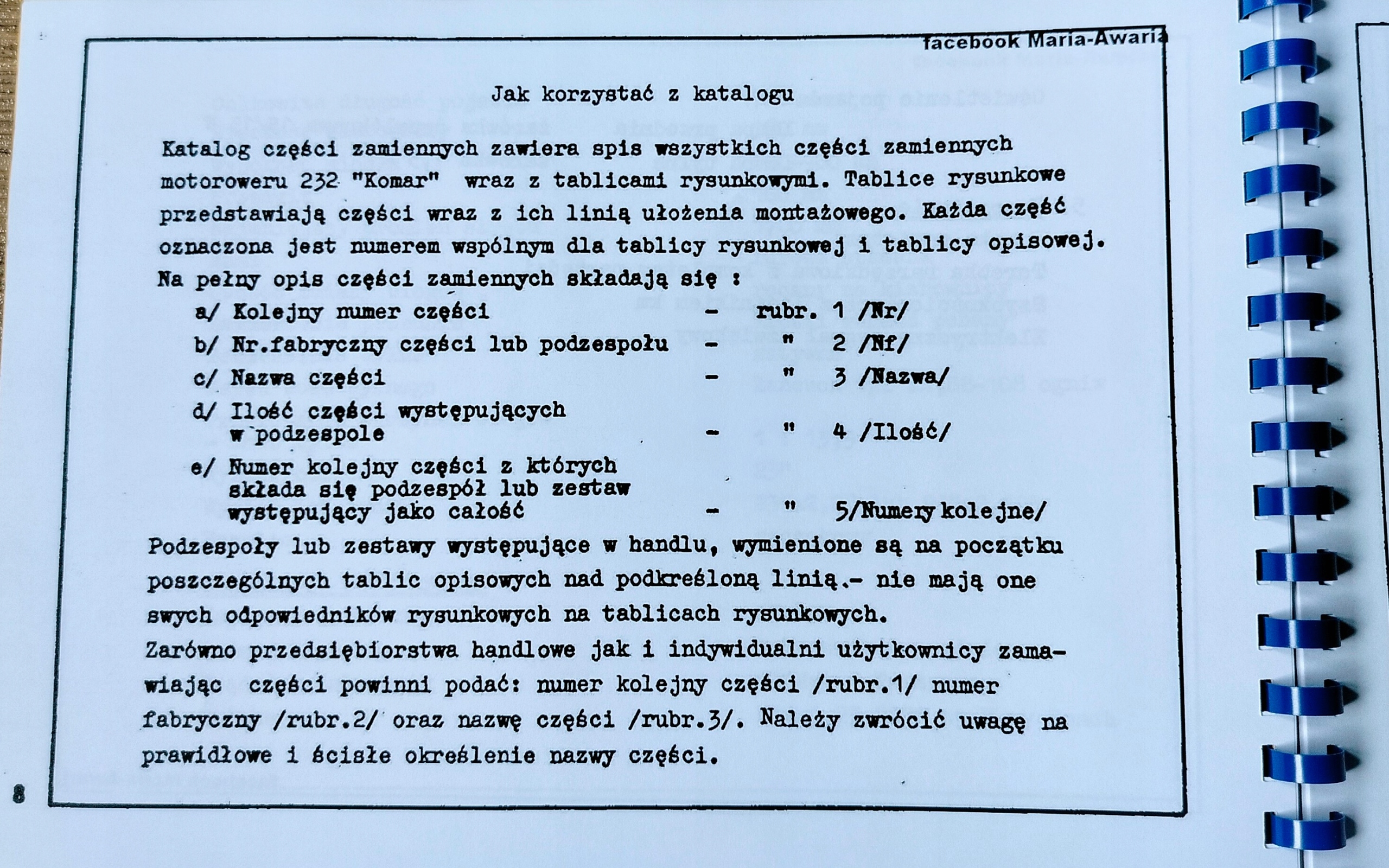 KATALOG INSTRUKCJA CZĘŚCI ZAMIENNYCH KOMAR MR 232
