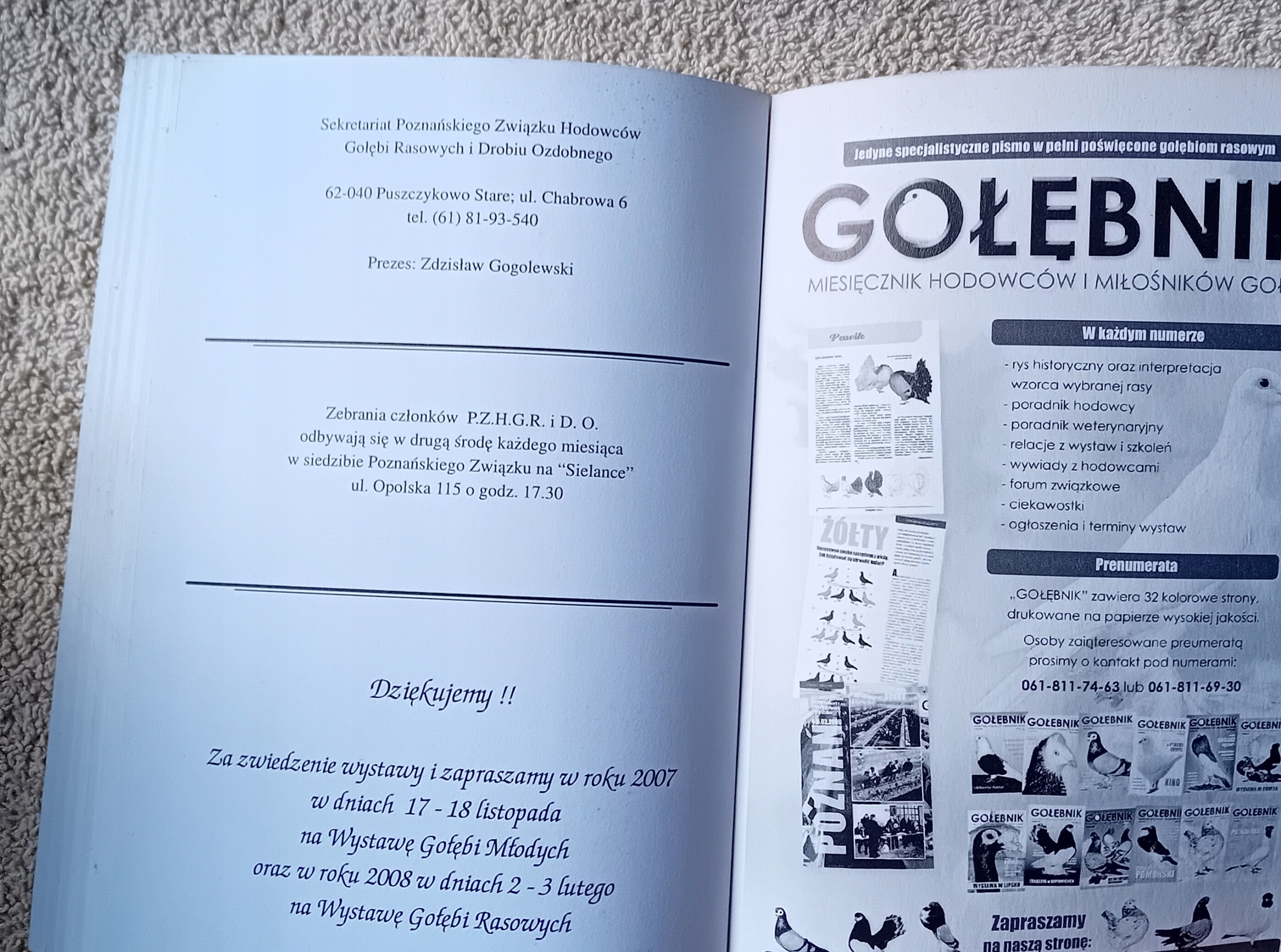 Katalog. Krajowa Wystawa Gołębi Rasowych i Drobiu Ozdobnego Poznań 2007.