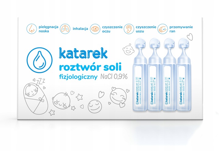 Продукт призначений переважно для немовлят і дітей. Упаковка містить 10 зручних ампул з оптимальним об'ємом 5 мл для одноразового застосування. Фізіологічний розчин Катарек - високоякісний стерильний продукт.
