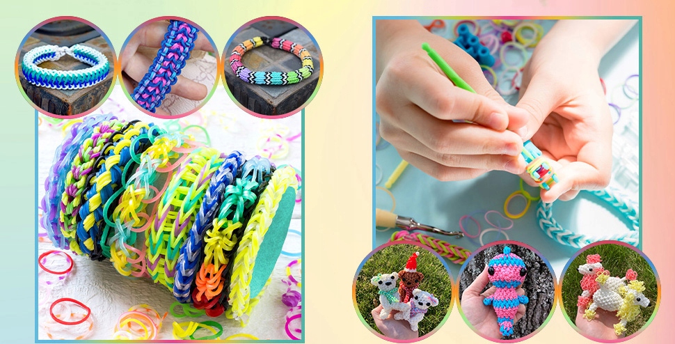 ✅ Ці гумки можна використовувати для виготовлення іграшок, що висять на рюкзаках, браслетів дружби, гумок для волосся, амулети, ляльки, подовжувачі для сумок та інші твори зі стрічками.