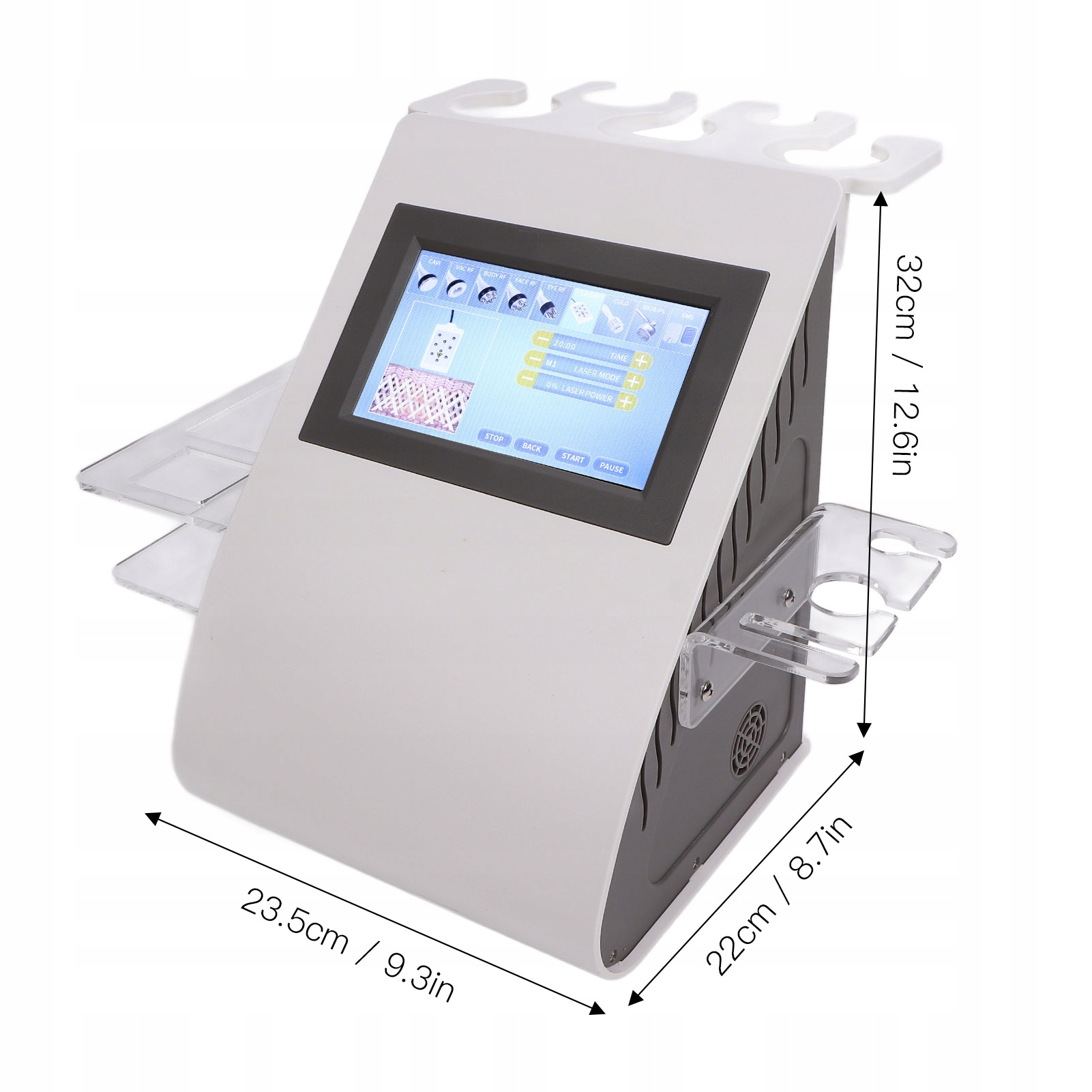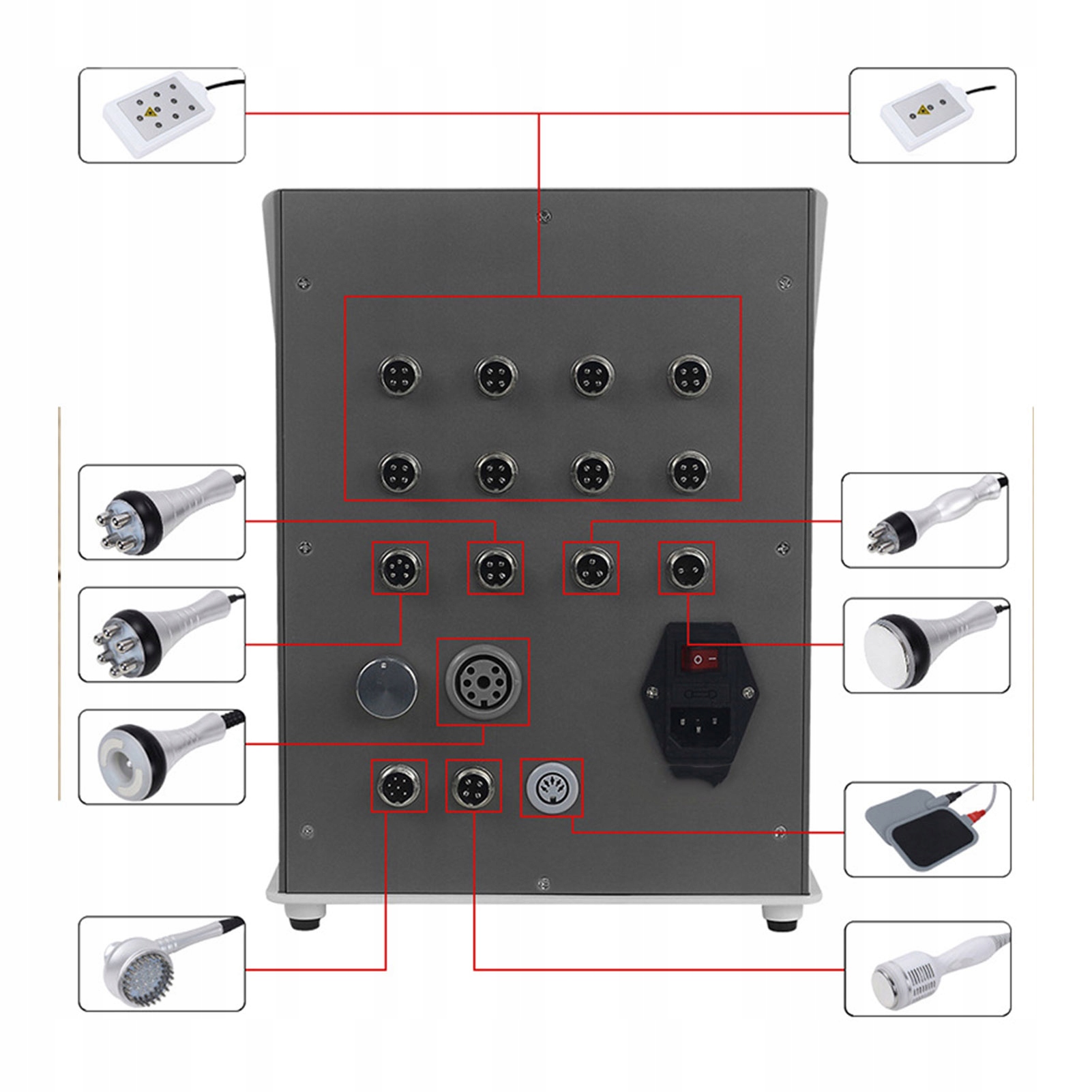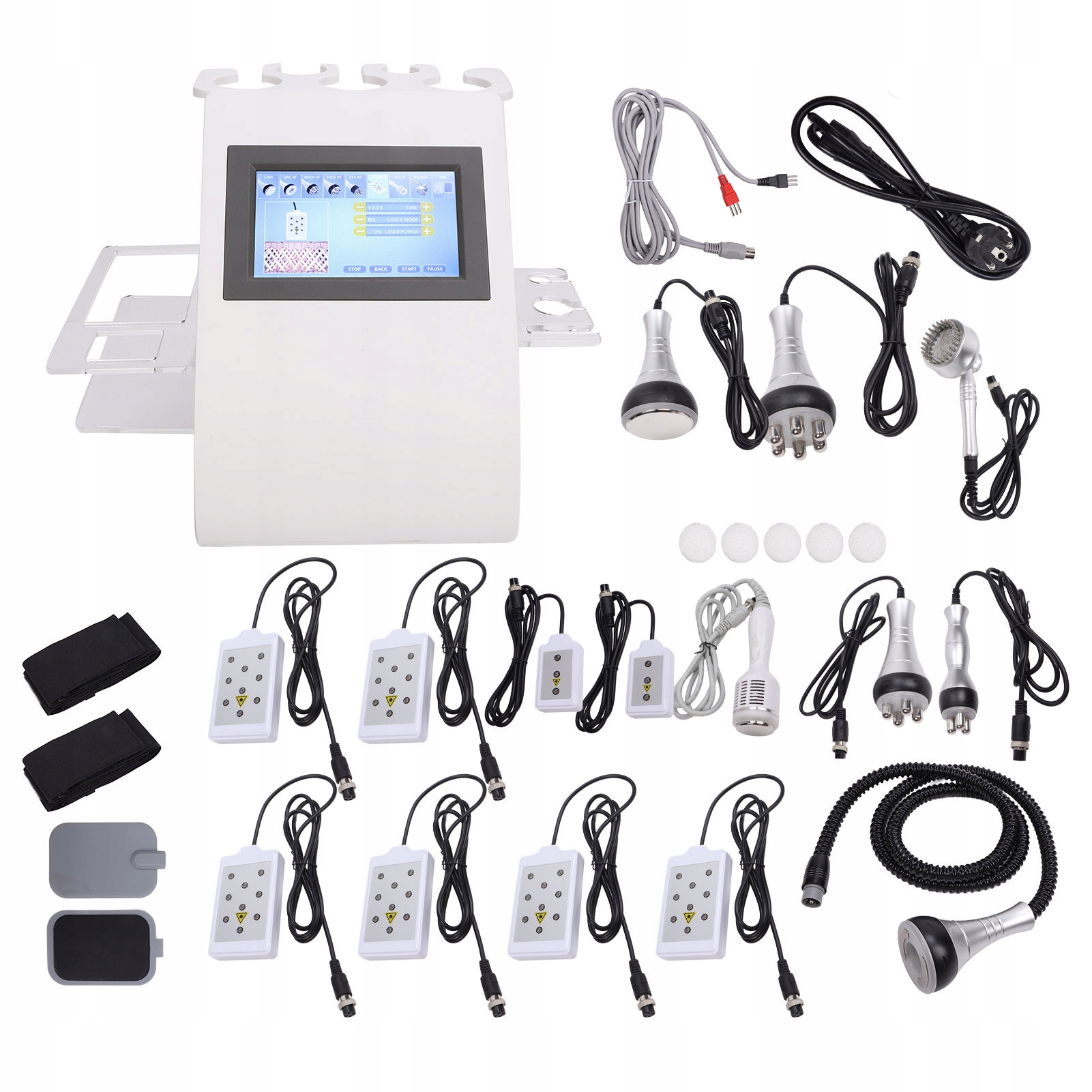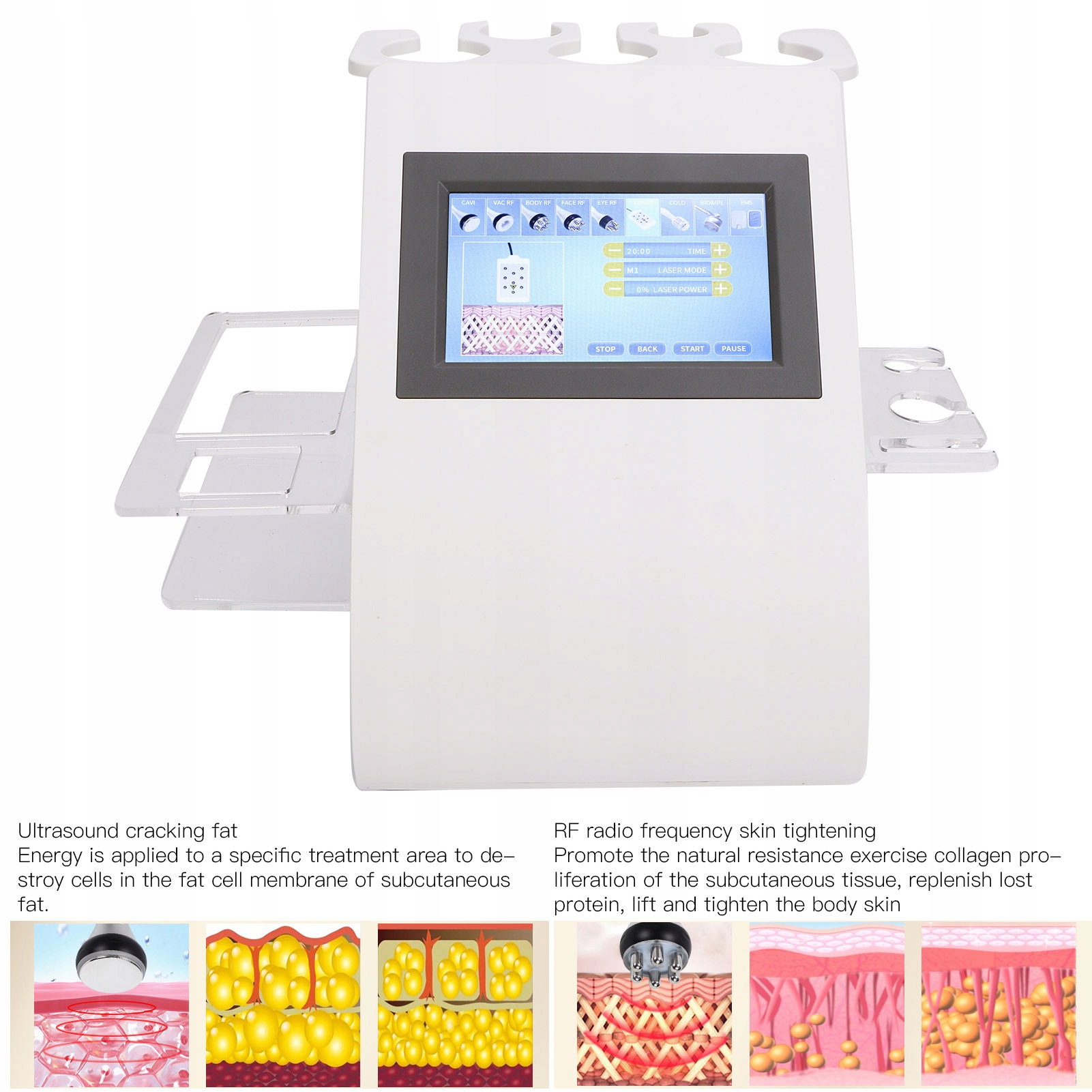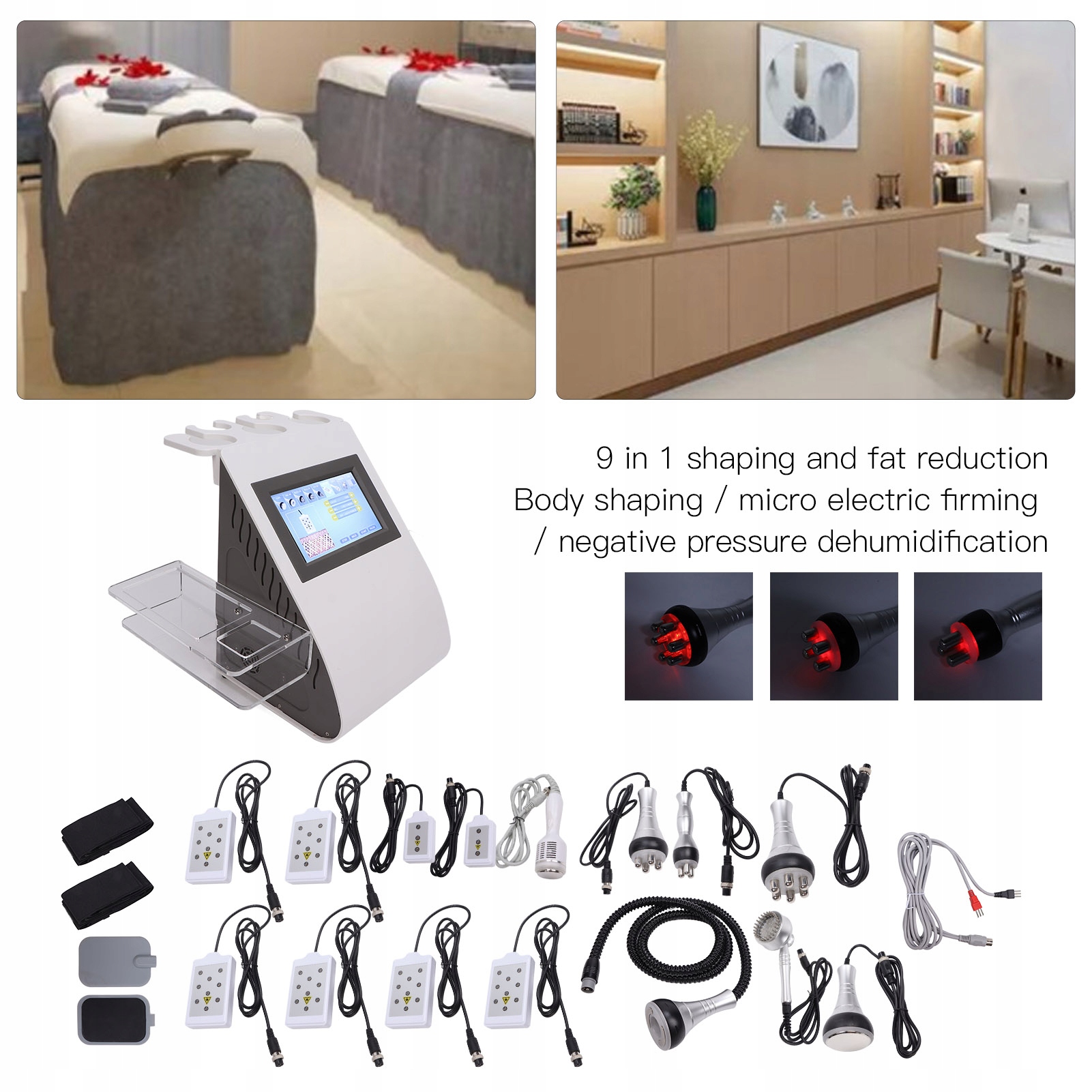 Ефективність: одна машина з кількома функціями, догляд за тілом, зменшення жиру, видалення кислоти, омолоджують шкіру, підтягують обличчя, зменшують темні кола, попрощаються з розслабленням тіла, відновлюють пори та тренують м’язи